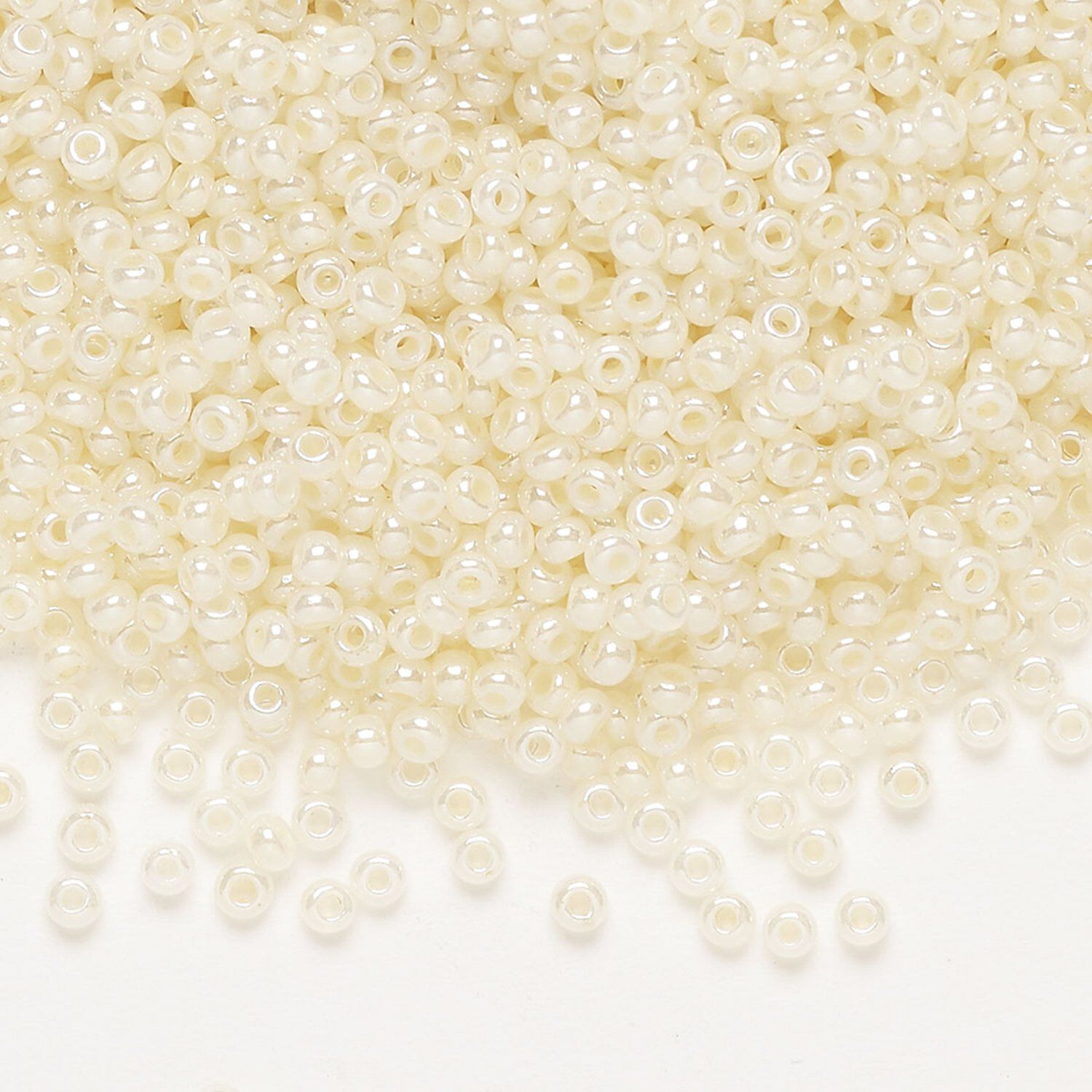 Seed bead, Preciosa Ornela, Czech glass, pkg/500g, opaque luster light cream pearl, #10 rocaille.