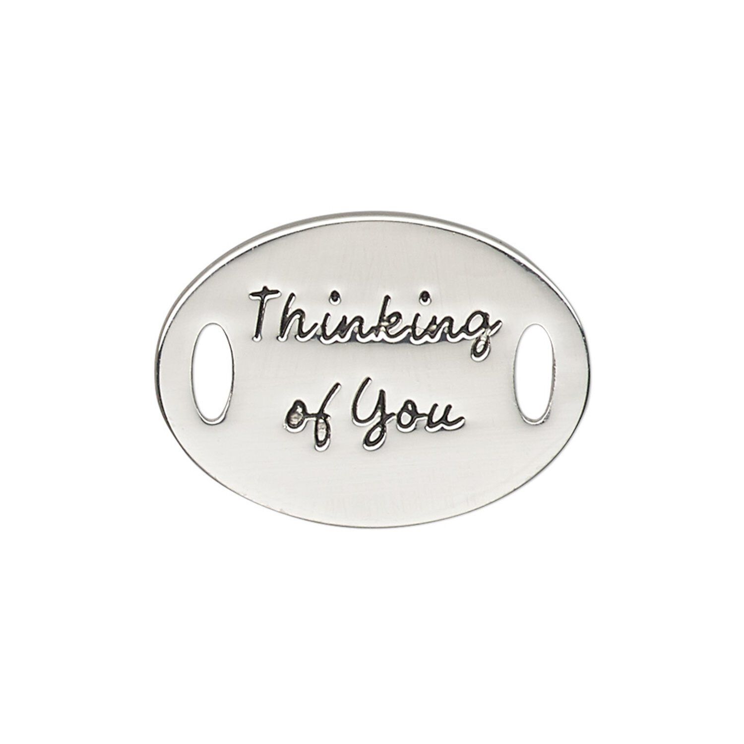Send a message of sweet tidings through jewelry made with this "Thinking of You" link. Easily add this flat oval link to special occasion, gift and fundraising jewelry by simply stringing ribbon or cord through the generous holes or attaching jumprings.
