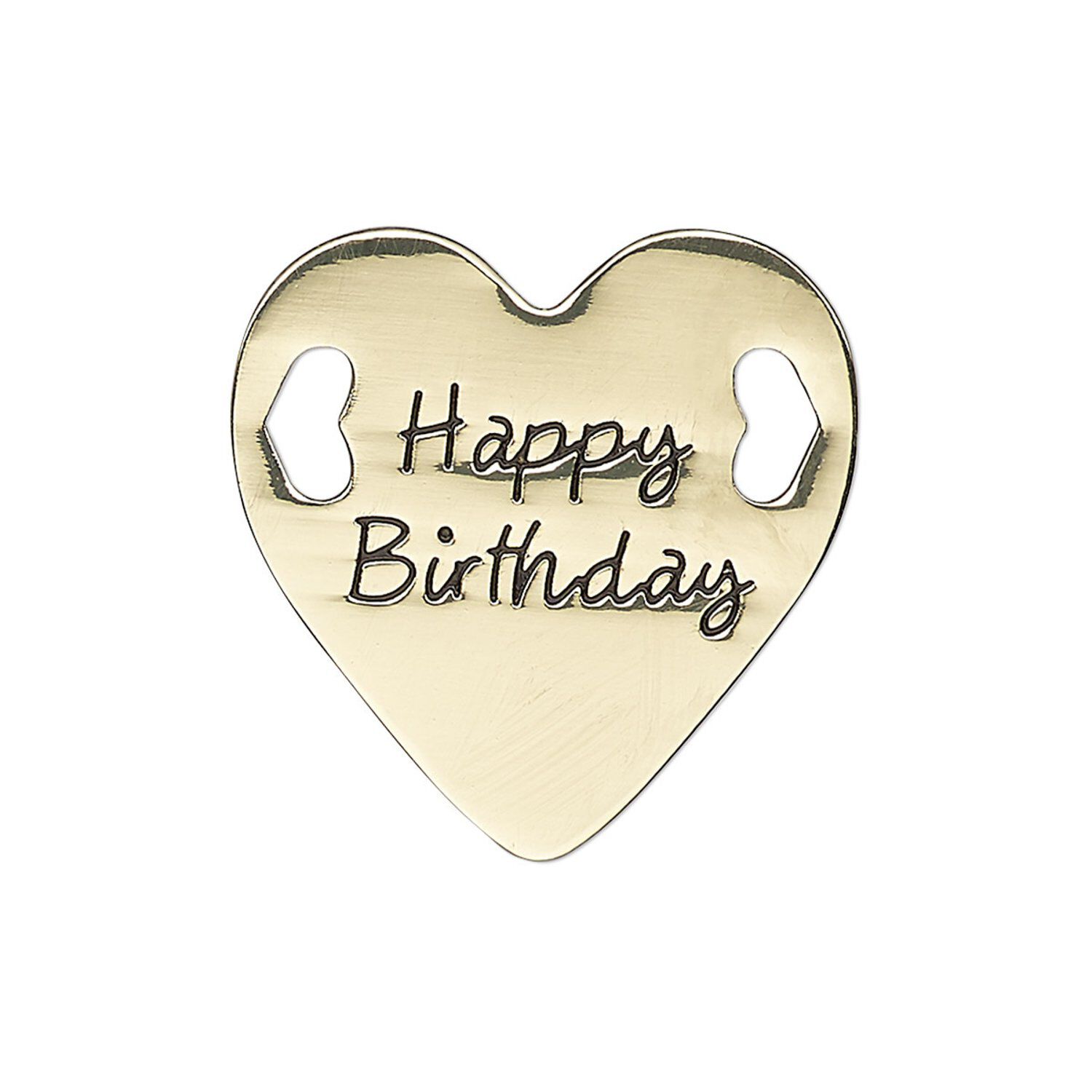 Link, antique gold-finished "pewter" (zinc-based alloy), 25.5mm single-sided flat heart with "Happy Birthday." Sold individually.