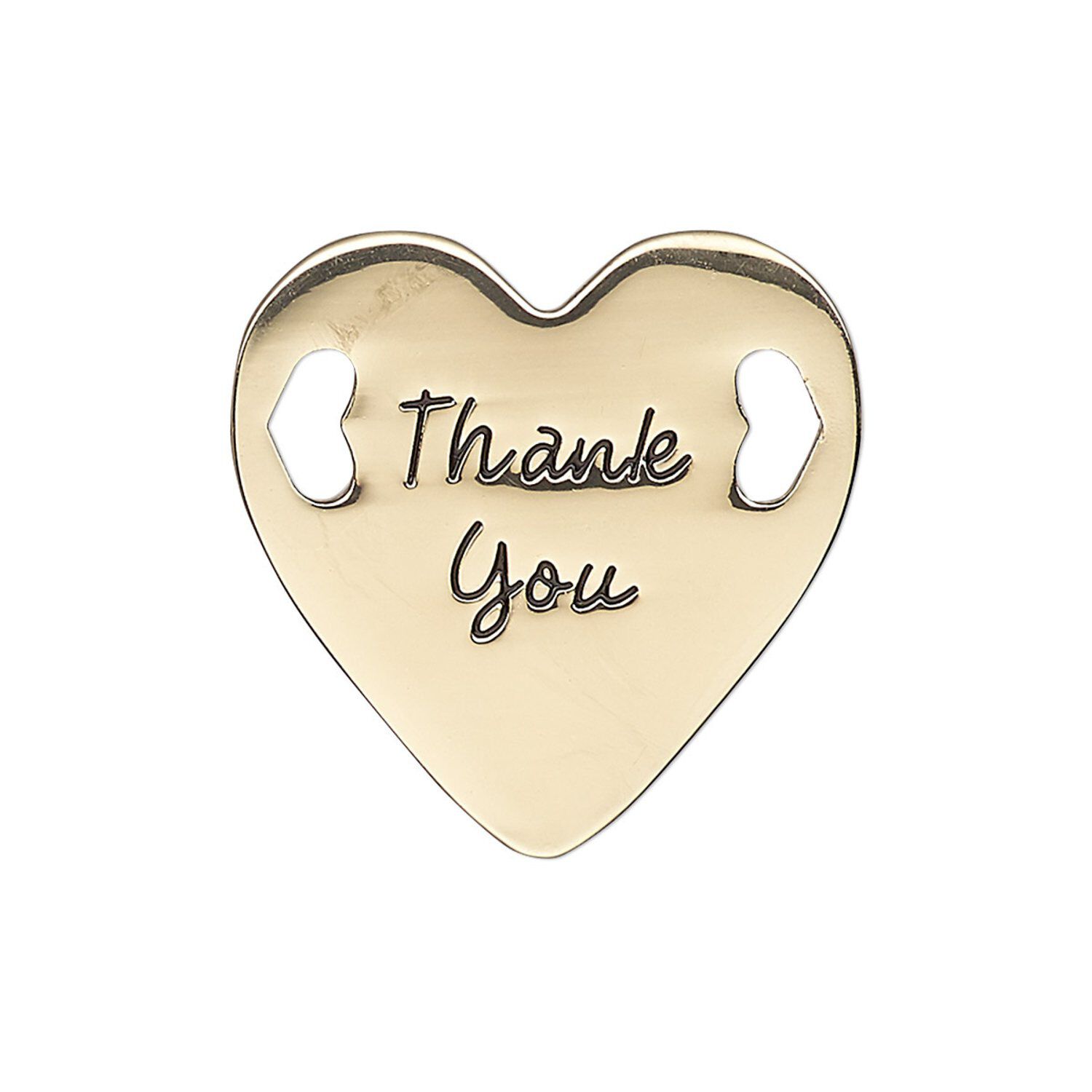 Send a message of gratitude through jewelry made with this "Thank You" link. Easily add this flat heart link to special occasion, gift and fundraising jewelry by simply stringing ribbon or cord through the generous holes or attaching jumprings.