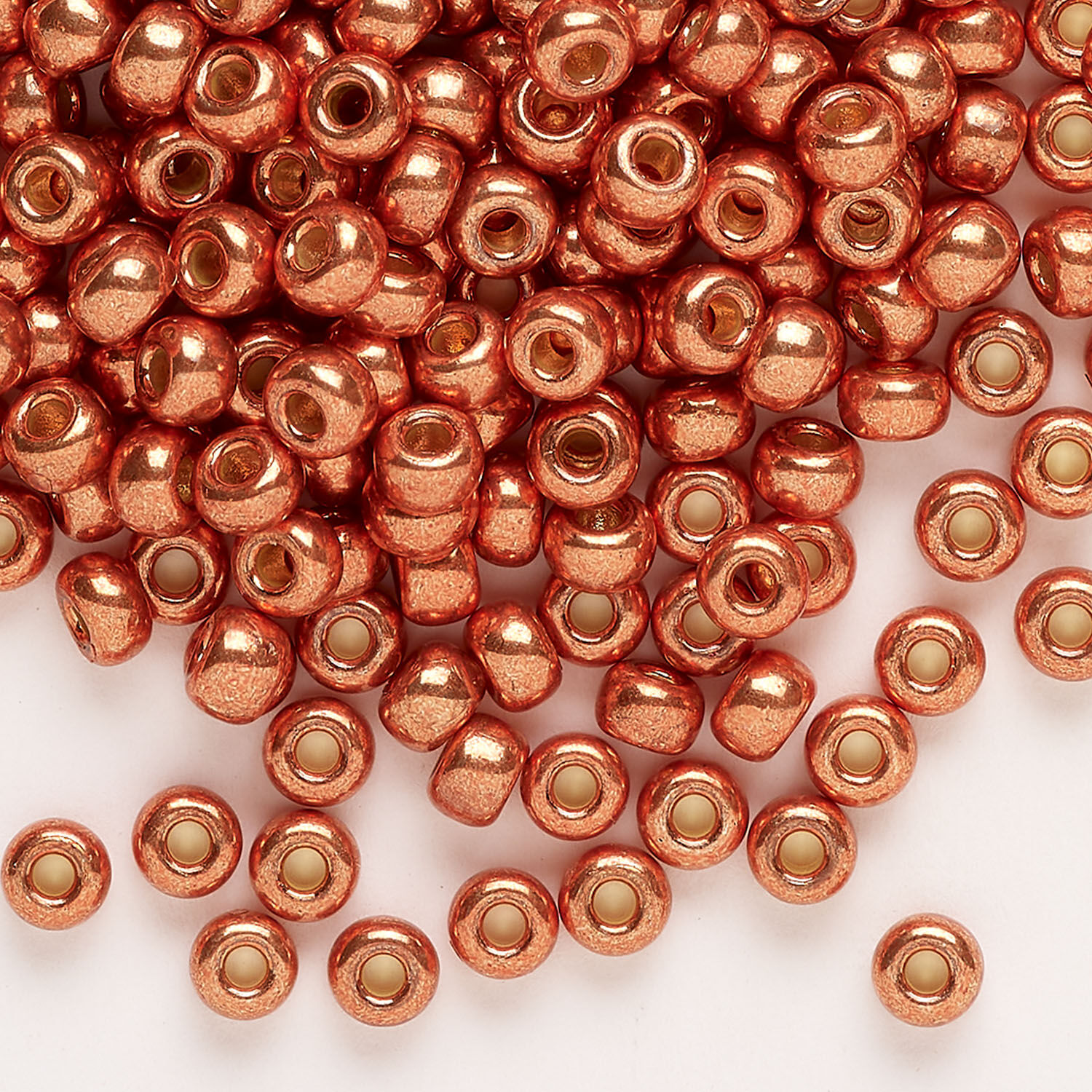 Seed bead, Miyuki 1pkg25g glass, #6 rocaille, Duracoat® opaque galvanized pink blush (RR-4207)
