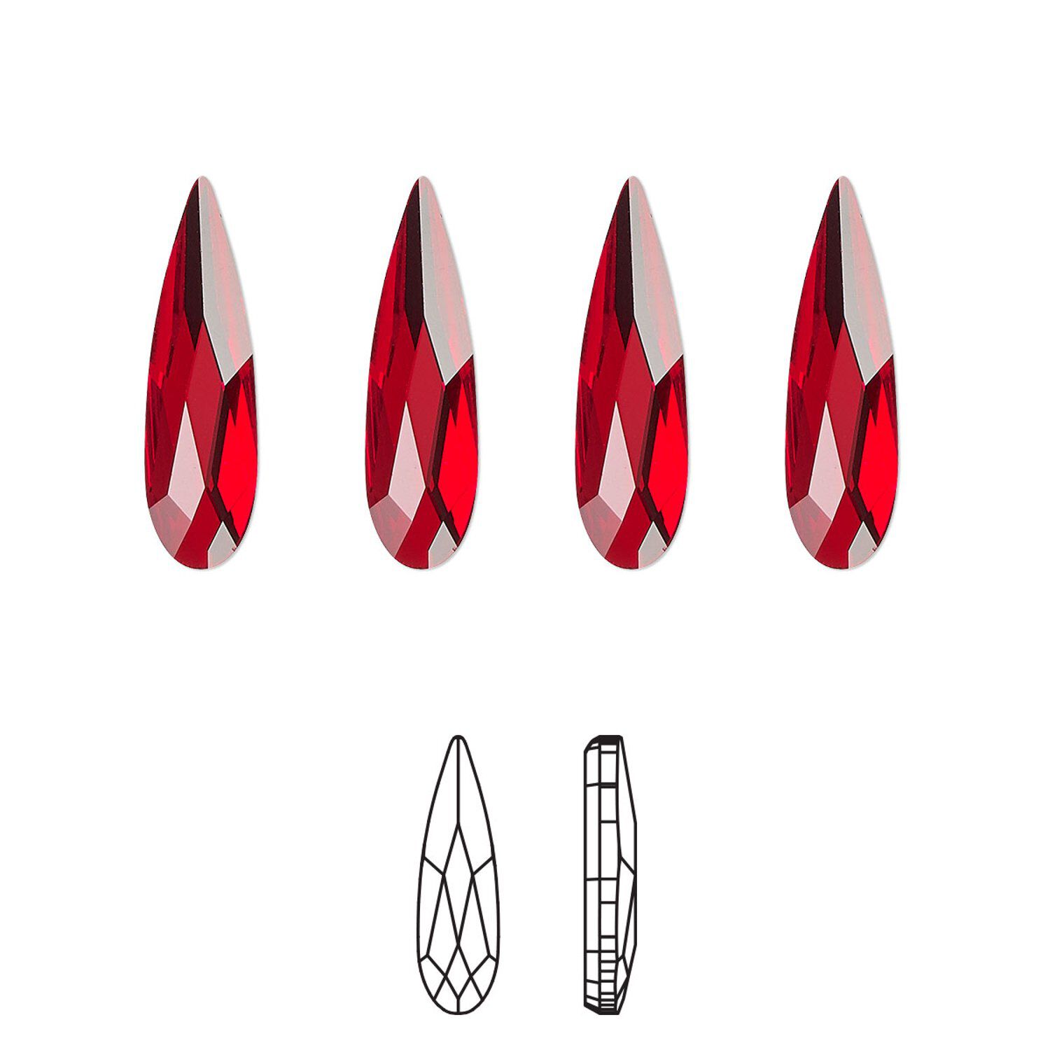 Flat back 24pk light Siam foil back, Crystal Passions® 14x3.9mm raindrop 2304