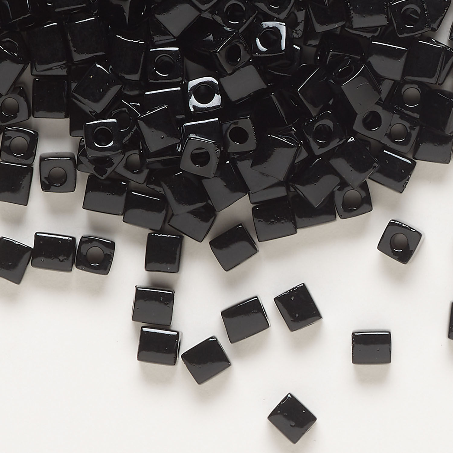 Seed bead, Miyuki 1pkg10g, glass, 3.5-3.7mm square, opaque black (SB-401)