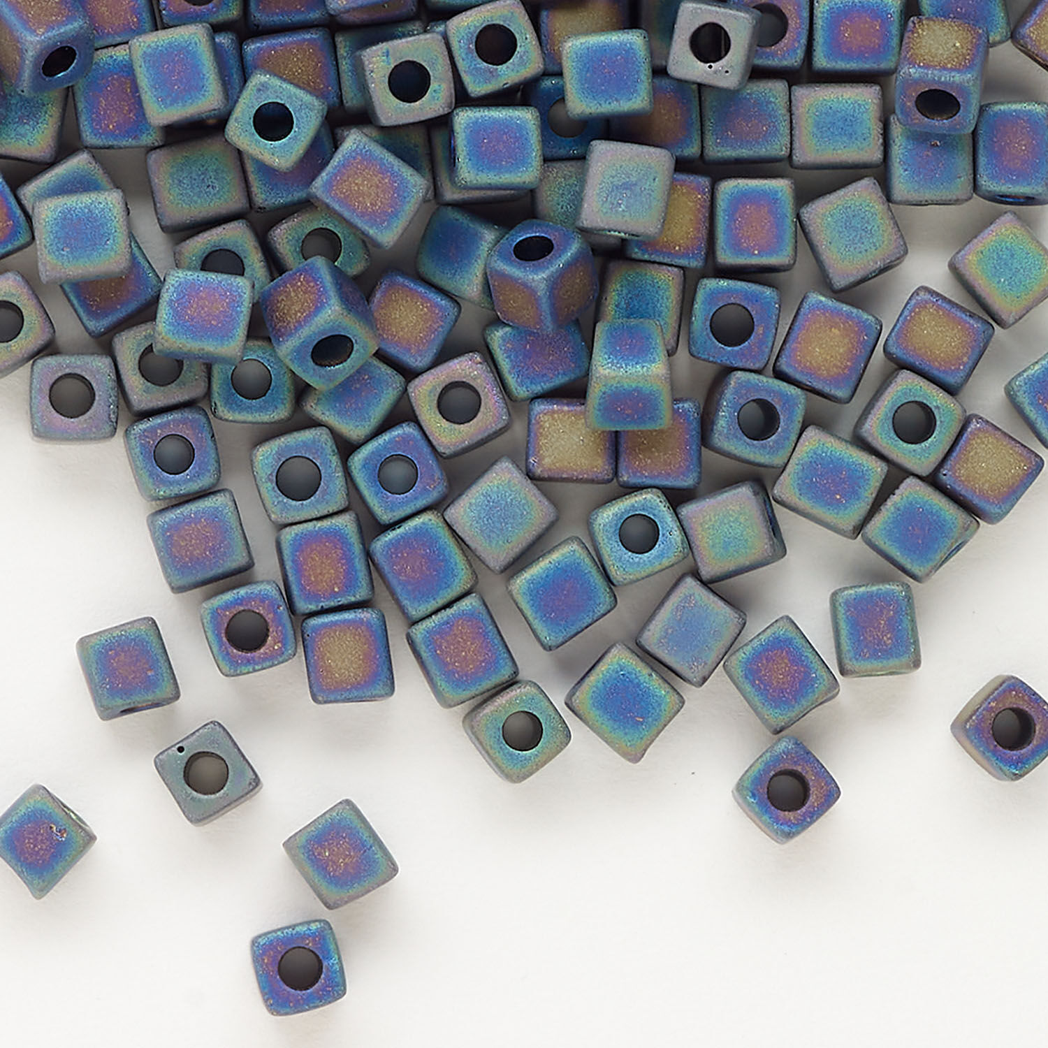 Miyuki square beads reflect light in every direction and add interesting dimensions and texture when mixed with round beads. Each square bead measures approximately 3.5-3.7mm and is a perfect complement to seed bead work. Manufactured by Miyuki of Japan, makers of popular Delica® seed beads.
