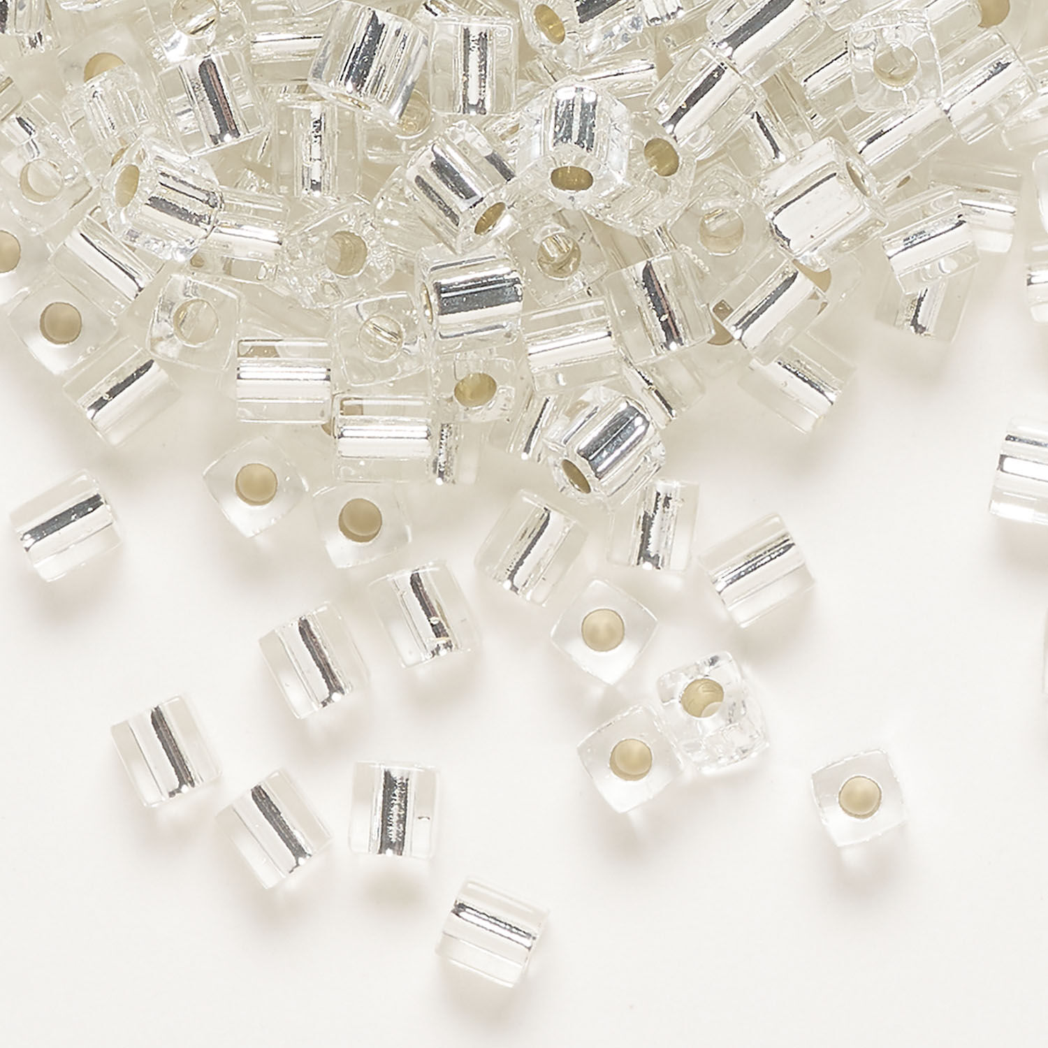 Seed bead, Miyuki 1pkg10g, glass, 3.5-3.7mm square, transparent silver-lined clear (SB-1)