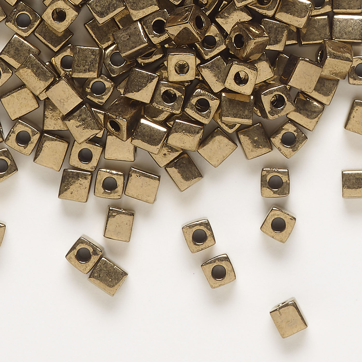 Miyuki square beads reflect light in every direction and add interesting dimensions and texture when mixed with round beads. Each square bead measures approximately 3.5-3.7mm and is a perfect complement to seed bead work. Manufactured by Miyuki of Japan, makers of popular Delica® seed beads.