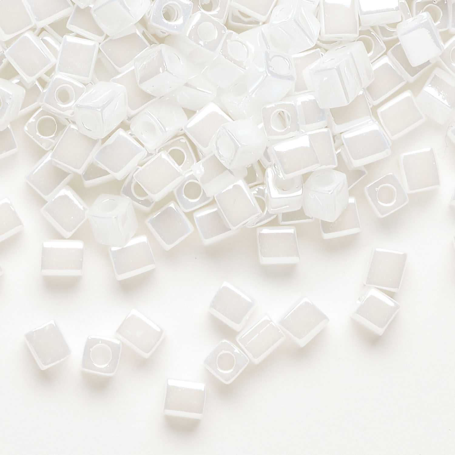 Seed bead, Miyuki 1pkg10g, glass, 3.5-3.7mm square, opaque ceylon white pearl (SB-420)