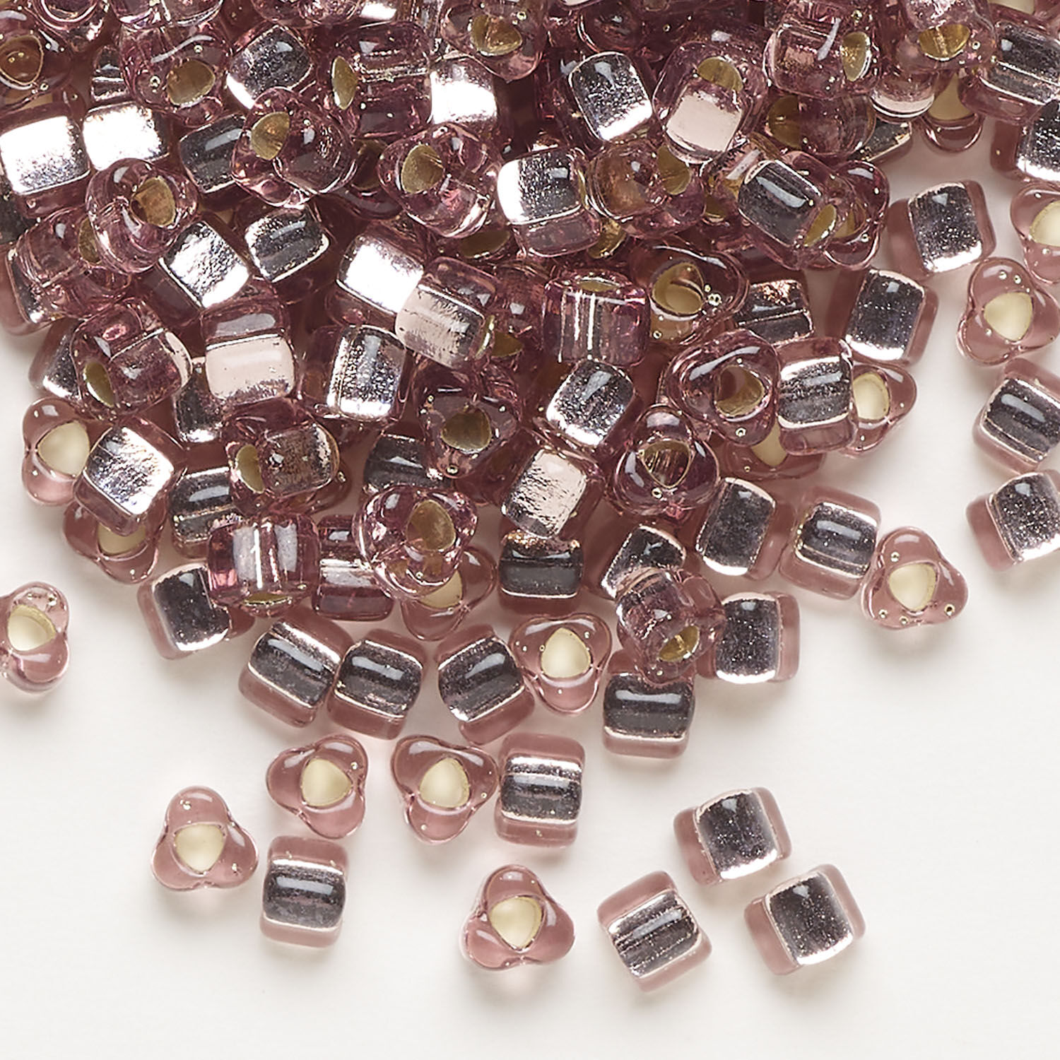 Seed bead, Miyuki 1pkg10g, glass, #5 triangle, transparent silver-lined smoky amethyst (TR-1804)