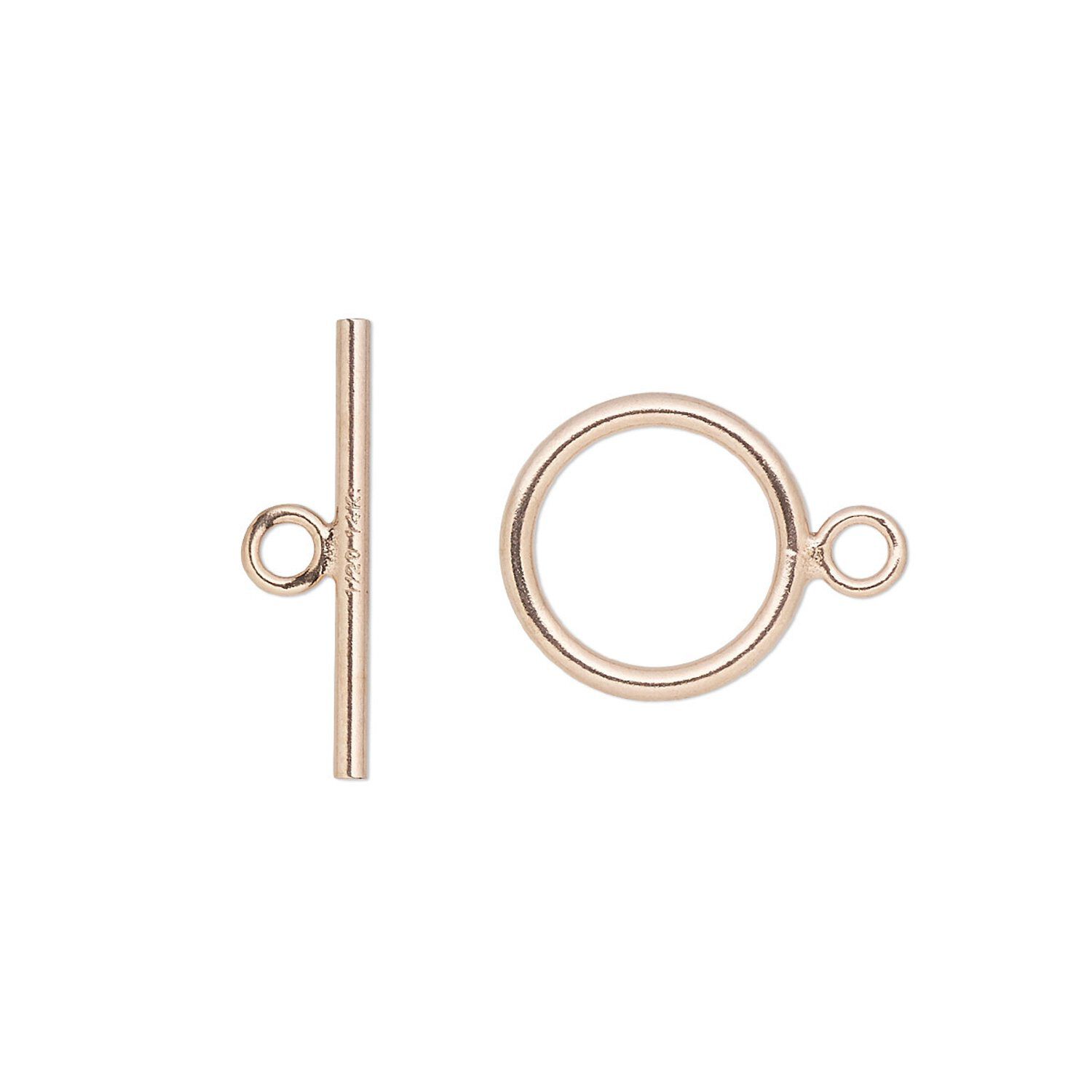 Gold-filled toggle clasp is made from solid gold-filled wire, featuring flat ends and a bright finish. A touch of copper added to the alloy gives a rosy gold hue. All the beauty of rose gold with the economy of gold-filled.