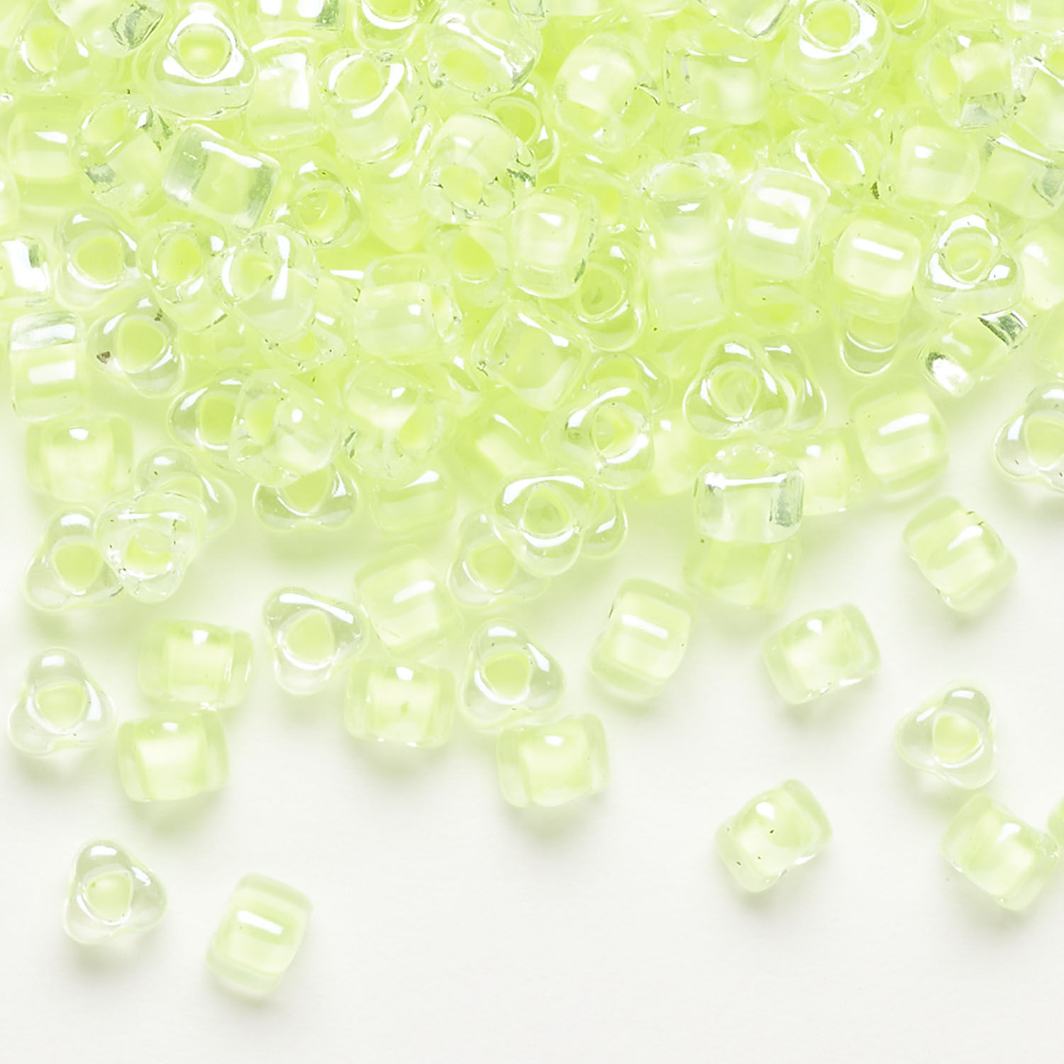 Seed bead, Miyuki 1pkg10g, glass, #5 triangle, transparent lime inside dyed color clear (TR-1119)