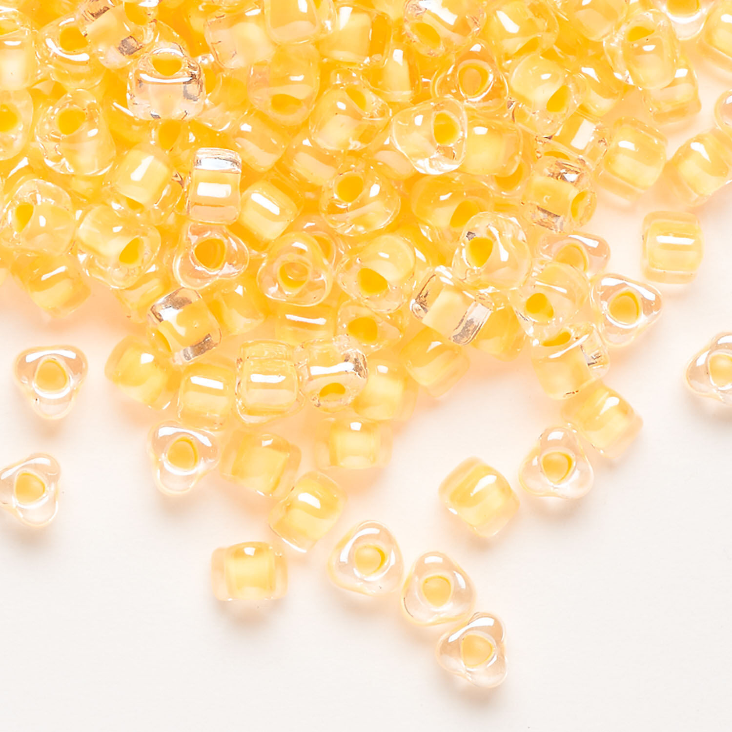 Seed bead, Miyuki 1pkg10g, glass, #5 triangle, transparent yellow inside dyed color clear (TR-1121)