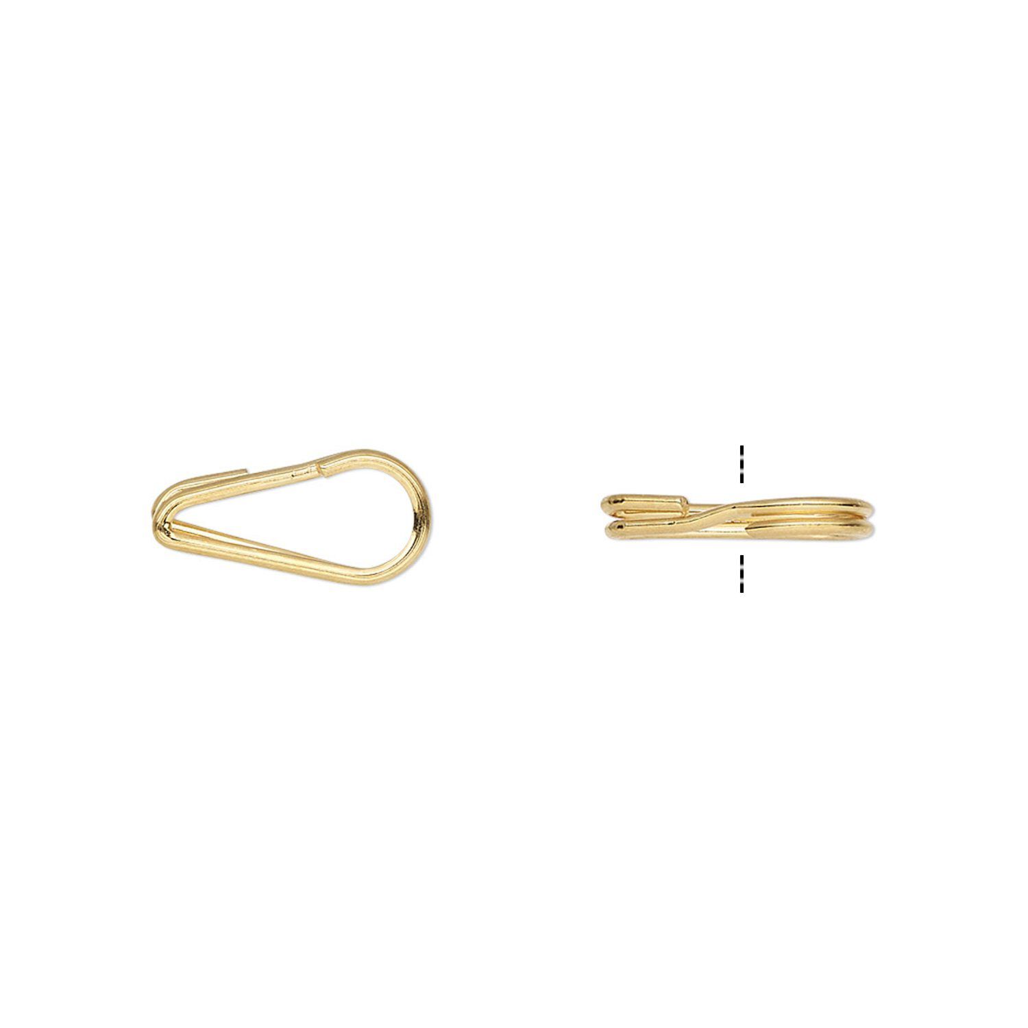 Split ring, gold-plated steel, 12x6mm teardrop with 9x3.5mm hole. Sold per pkg of 10.