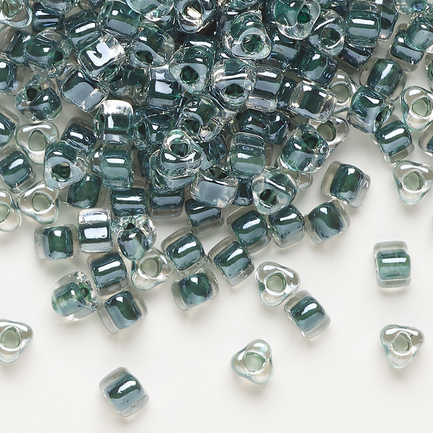 Seed bead, Miyuki 1pkg10g, glass, #5 triangle, transparent steel blue inside dyed color clear (TR-1127)