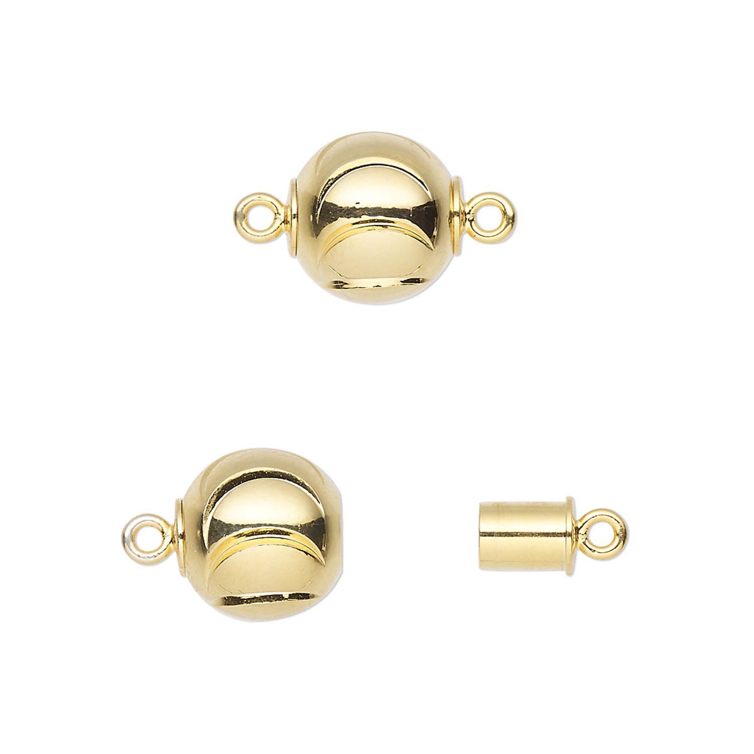 Clasp magnetic 1pkg1 gold-plated, 10mm round, brass 1-strand