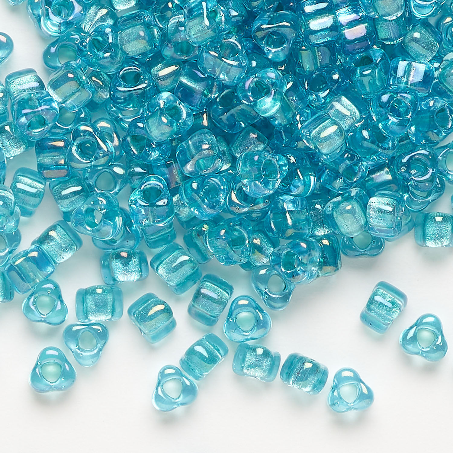 Seed bead, Miyuki 1pkg10g, glass, #5 triangle, transparent teal inside dyed color light blue (TR-1822)