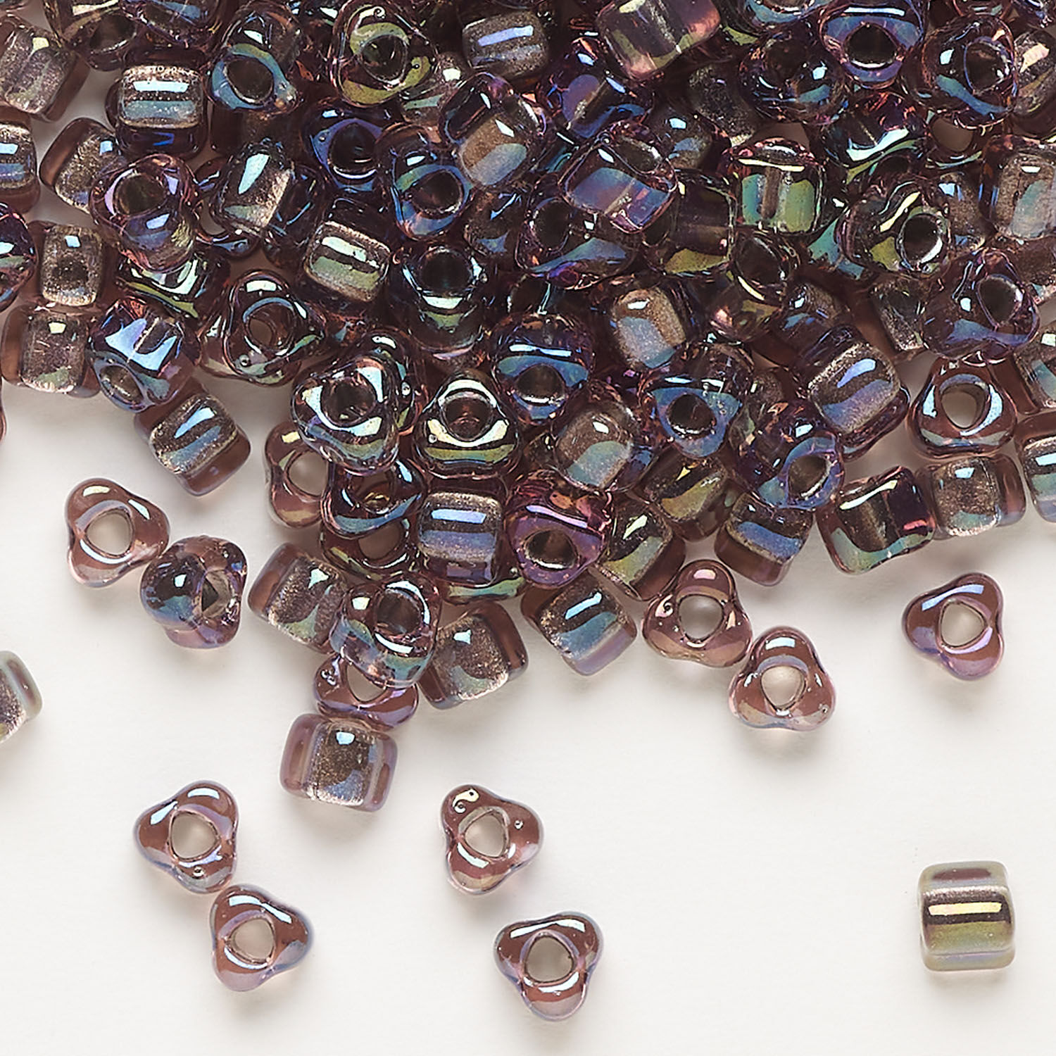 Seed bead, Miyuki 1pkg10g, glass, #5 triangle, transparent grey inside dyed color lilac (TR-1836)
