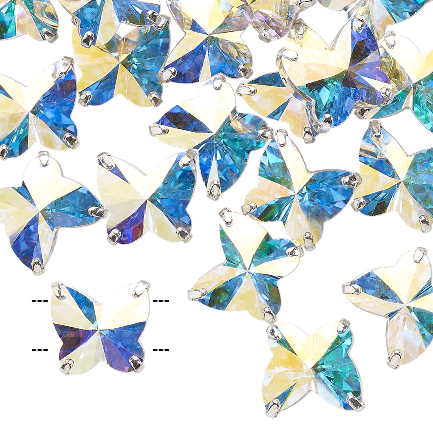 Sew-on 1pk crystal AB silver plate, Preciosa Czech crystal 10mm spacer butterfly