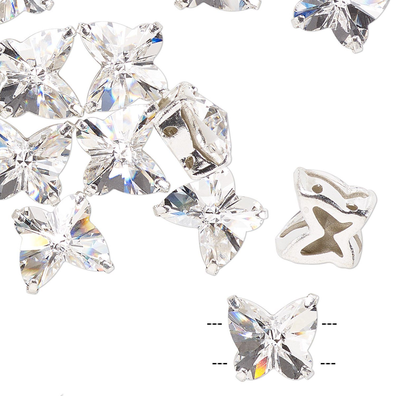 Sew-on 1pk crystal silver plate, Preciosa Czech crystal 10mm spacer butterfly