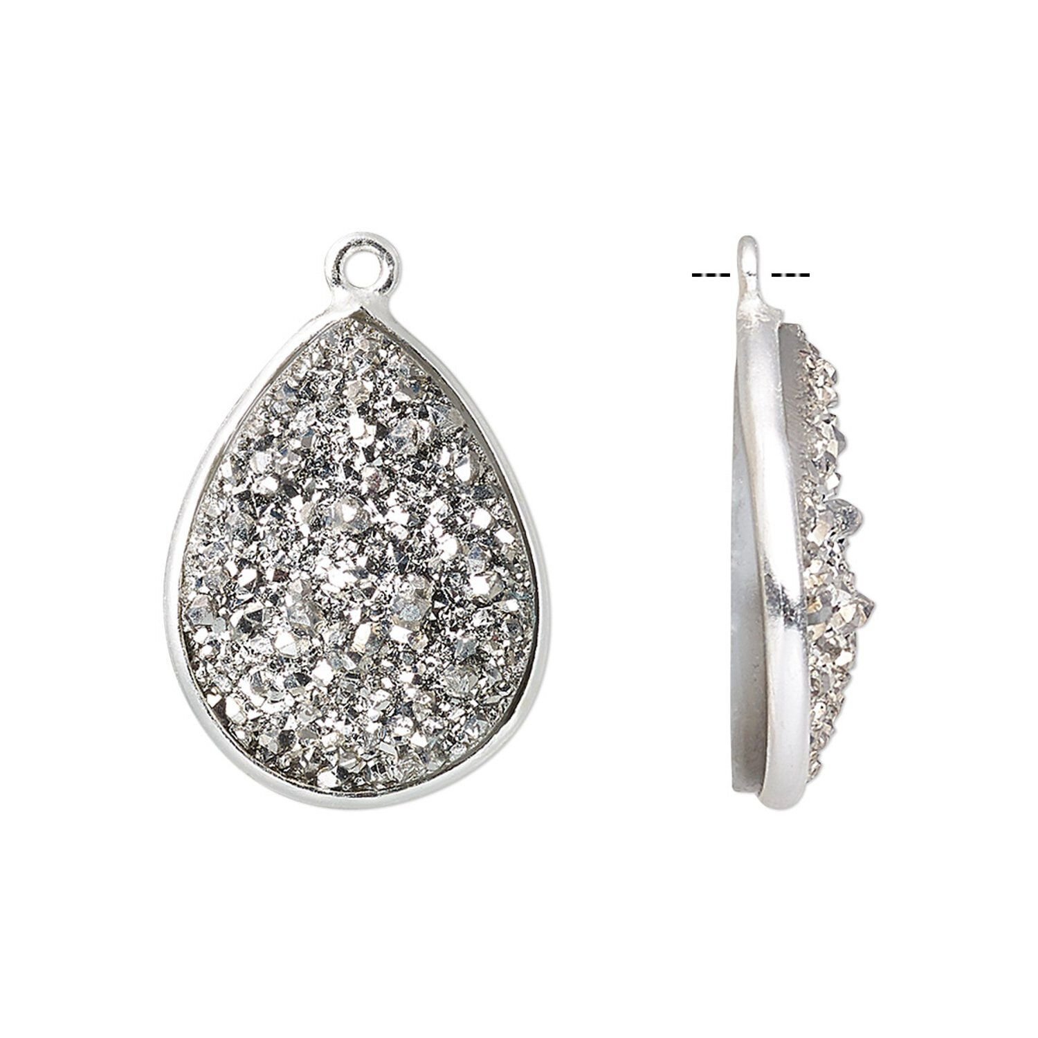 Sparkling druzy agate is set on a sterling silver drop for easily adding this popular raw-gemstone look to jewelry designs. Druzy is the result when tiny quartz crystals form on a gemstone. Handmade in India. Sizes, shapes and colors may vary with handcrafted items.