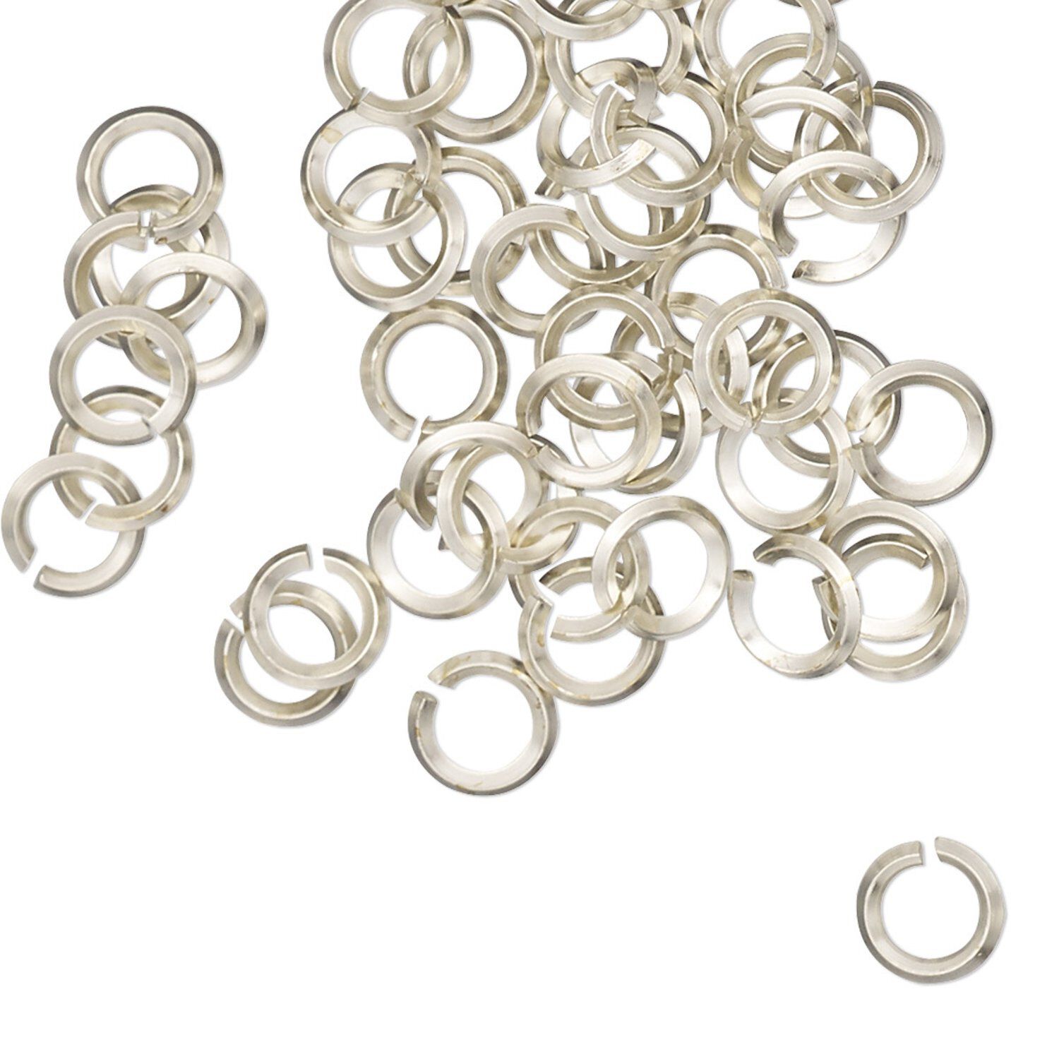 Round jump rings made of diamond-shaped nickel silver wire add visual interest to jewelry and chainmaille designs. Diamond-shaped wire (square wire bent at the corners, not the flat sides) allows for a range of weaves and half-hard metal content means rings are easy enough to open, yet firm enough to retain shape for designs. Jump rings are flush-cut using a rotary blade for a smaller gap when closing, resulting in a near-seamless look. Nickel Silver, or German silver as it is commonly called, emulates the gleam of sterling silver. (65% copper, 18% nickel and 17% zinc). Jump ring size, gauge and inside diameter are approximate. Sizes, shapes and colors may vary with handcrafted items. Jump rings have an anti-tarnish coating.