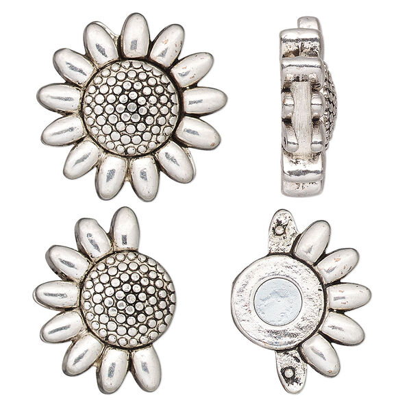 Finish multiple strands of leather and other cording in a stylish way with this sunflower magnetic clasp. Just glue in the ends with your favorite jewelry adhesive. Standard magnetic strength.