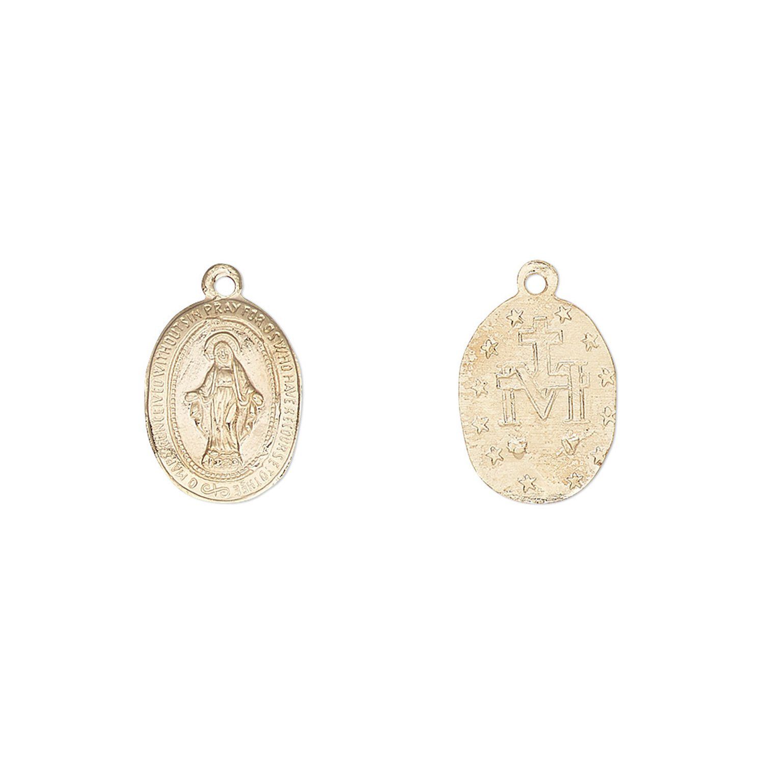 Drop, 14Kt gold-filled, 12x9mm two-sided oval with Mother Mary. Sold individually.