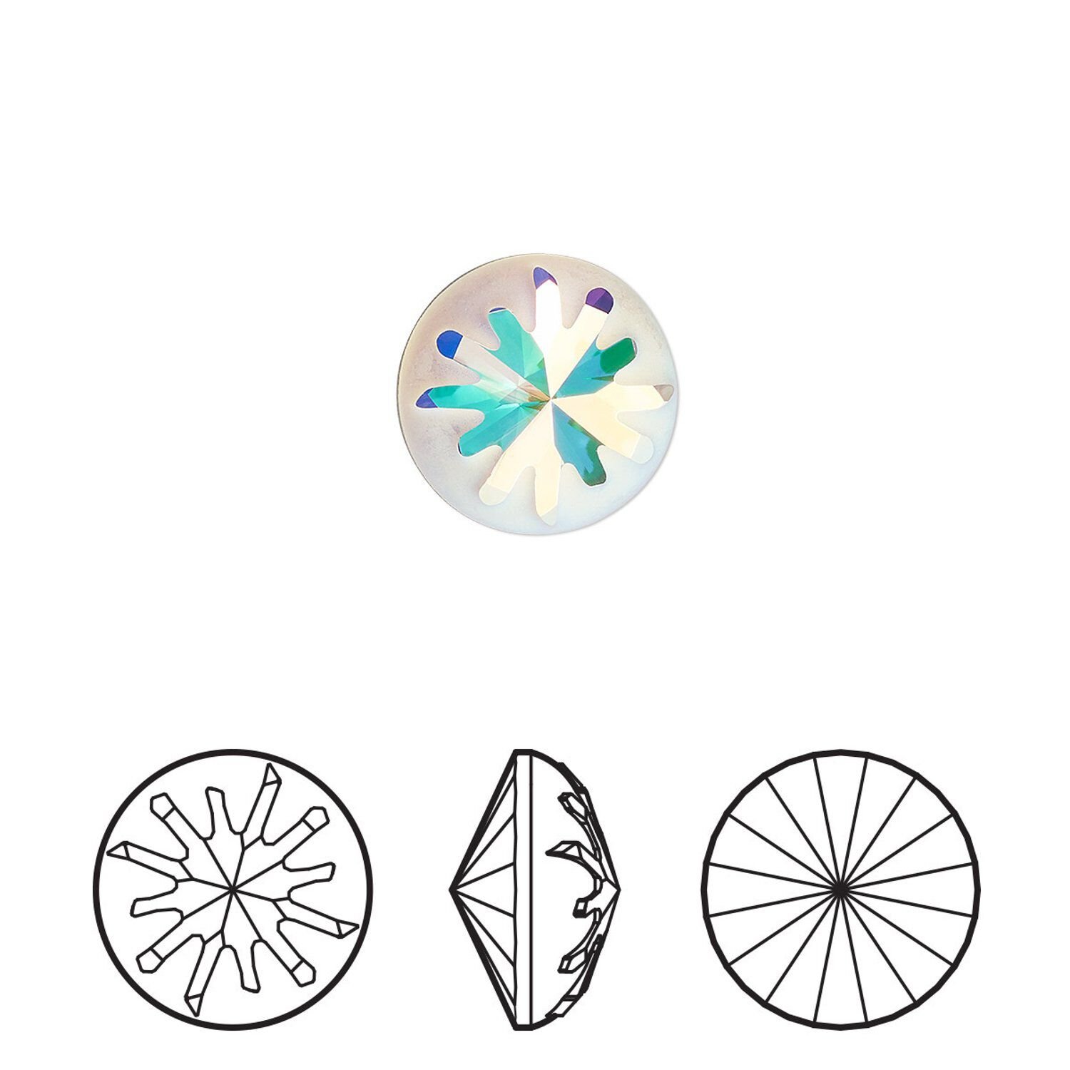 Round stone 2pk crystal AB foil back, Crystal Passions® 10mm sea urchin 1695