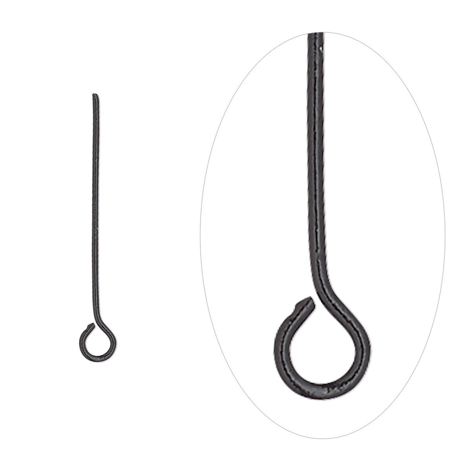 Eye pin, black-finished brass, 1 inch, 21 gauge. Sold per pkg of 50.