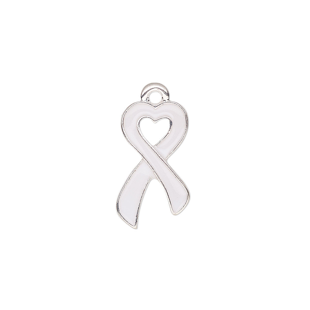 Charm, enamel and silver-finished "pewter" (zinc-based alloy), white, 18x10.5mm single-sided awareness ribbon heart. Sold per pkg of 2.