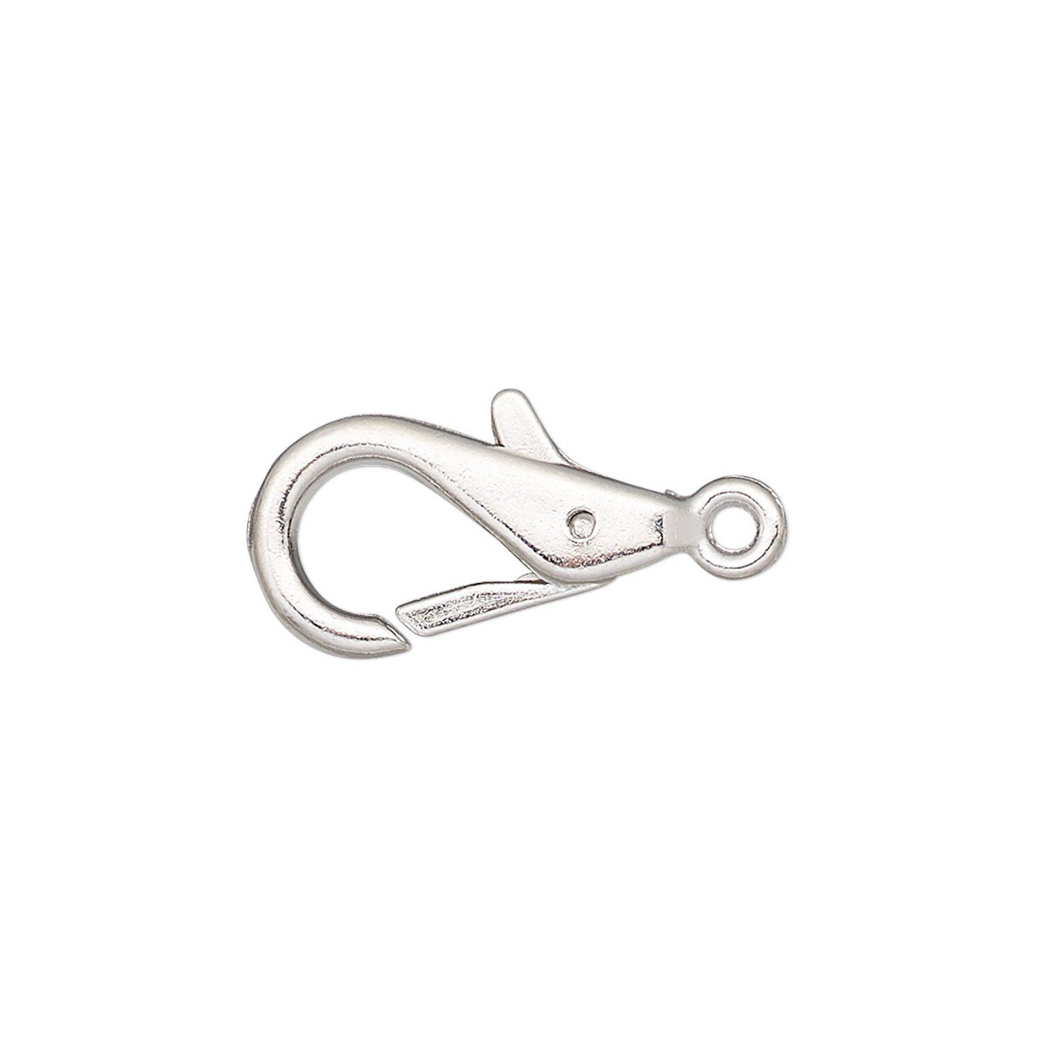 This larger size lobster claw clasp works great in jewelry as well as zipper pulls, key rings, lanyards and hand bags. The clasp itself is a "pewter" (zinc-based alloy) base with a gleaming imitation rhodium finish, while the actual spring mechanism is made of steel for added strength.