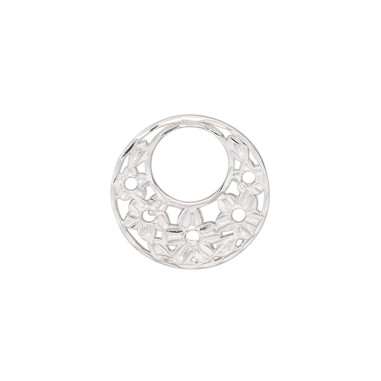 Component, sterling silver, 18mm single-sided diamond-cut go-go with flower design. Sold individually.