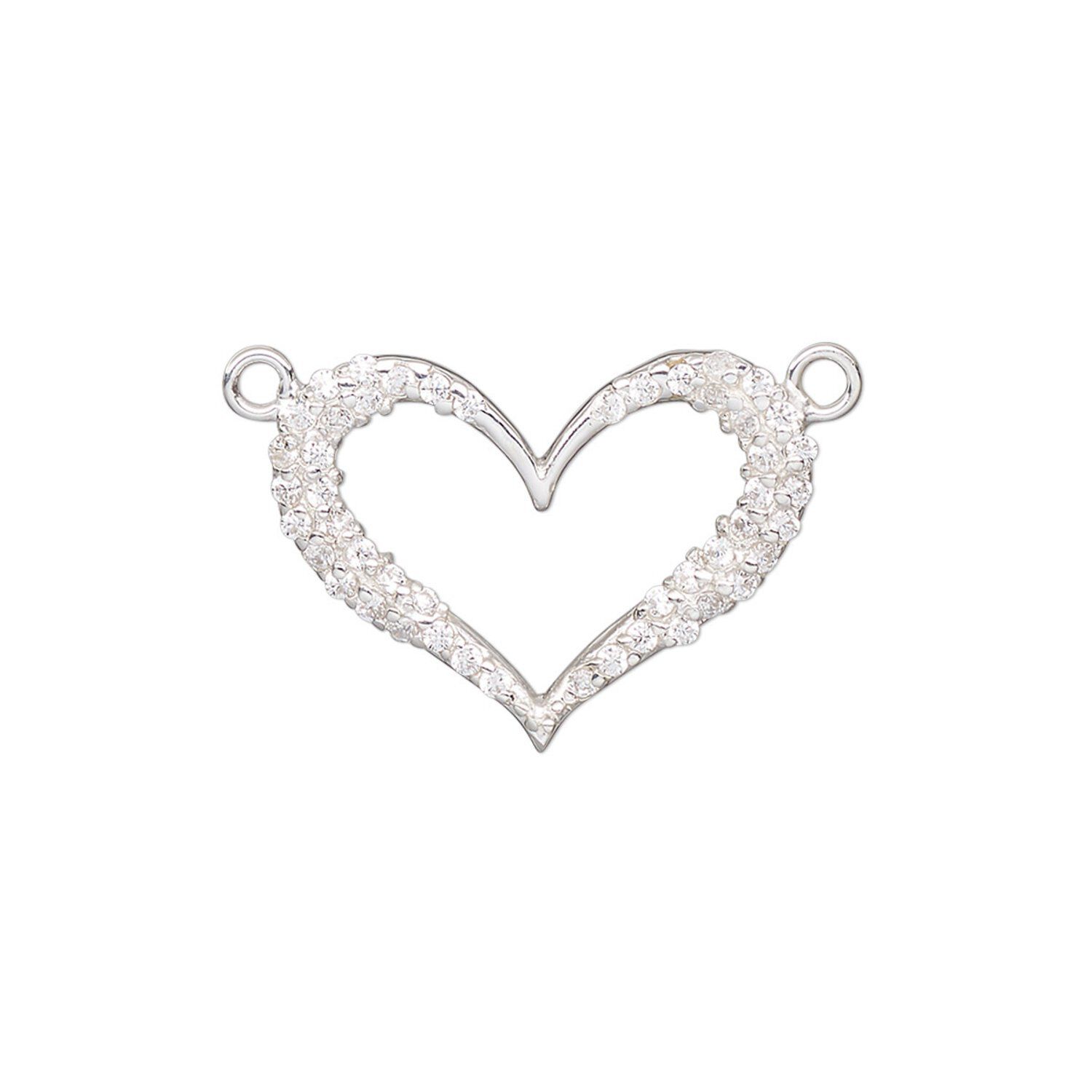 This open heart link is rendered in sterling silver--a customer-favorite metal for its precious metal gleam--and is adorned with cubic zirconia crystals for added flash. Link has an anti-tarnish coating.