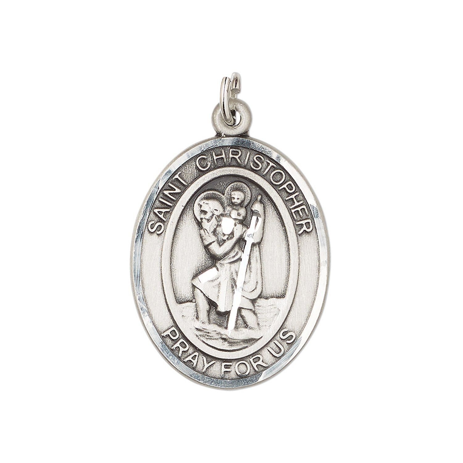 This high-quality Britannia pewter Saint Christopher drop has handmade diamond-cut features for exceptional crisp detail, making it perfect for use in Rosaries and other religious-inspired jewelry. Sizes, shapes and colors may vary with handcrafted items.
