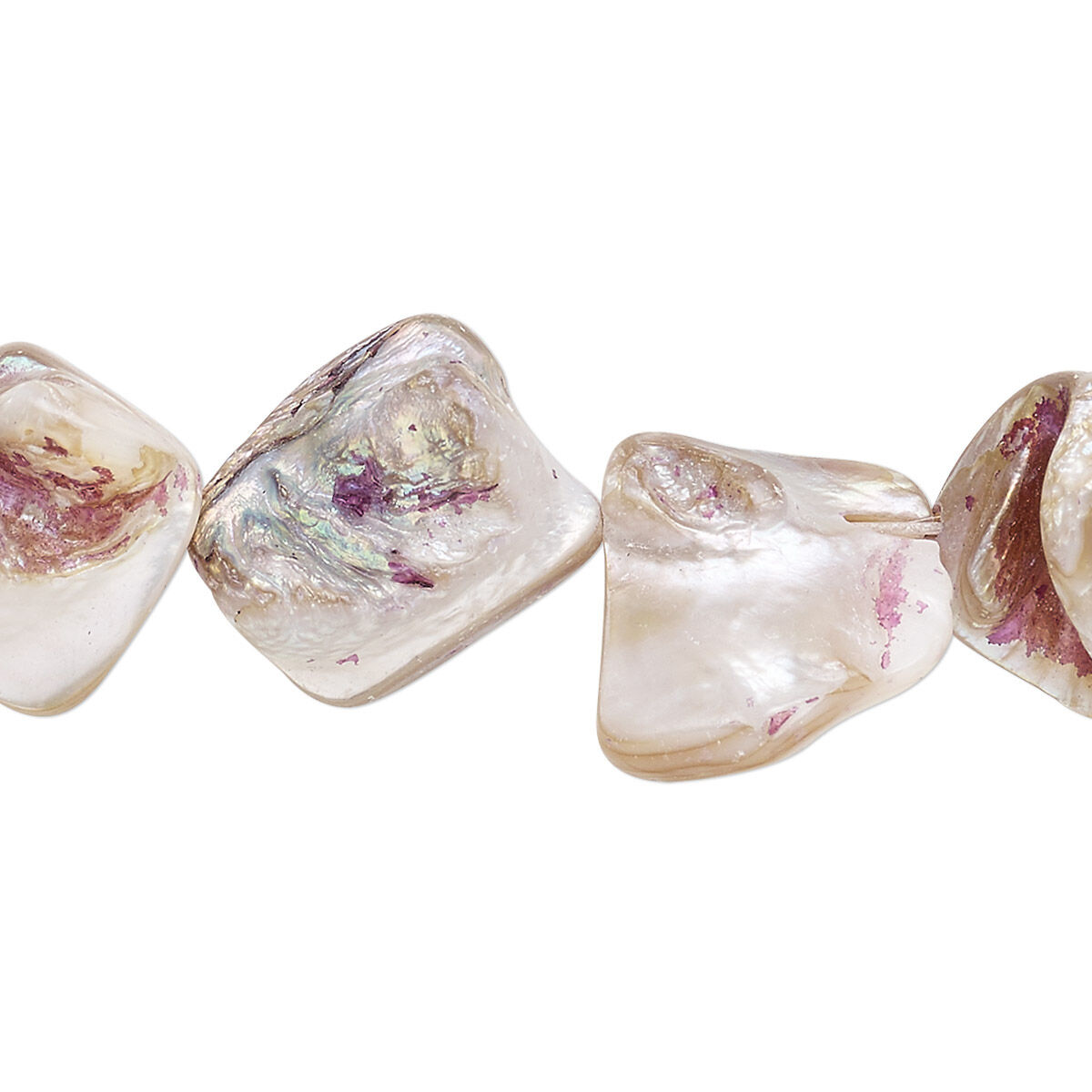 Bead, mother-of-pearl shell (dyed), rose, medium to large diagonally drilled nugget, Mohs hardness 3-1/2. Sold per 15" to 16" strand.