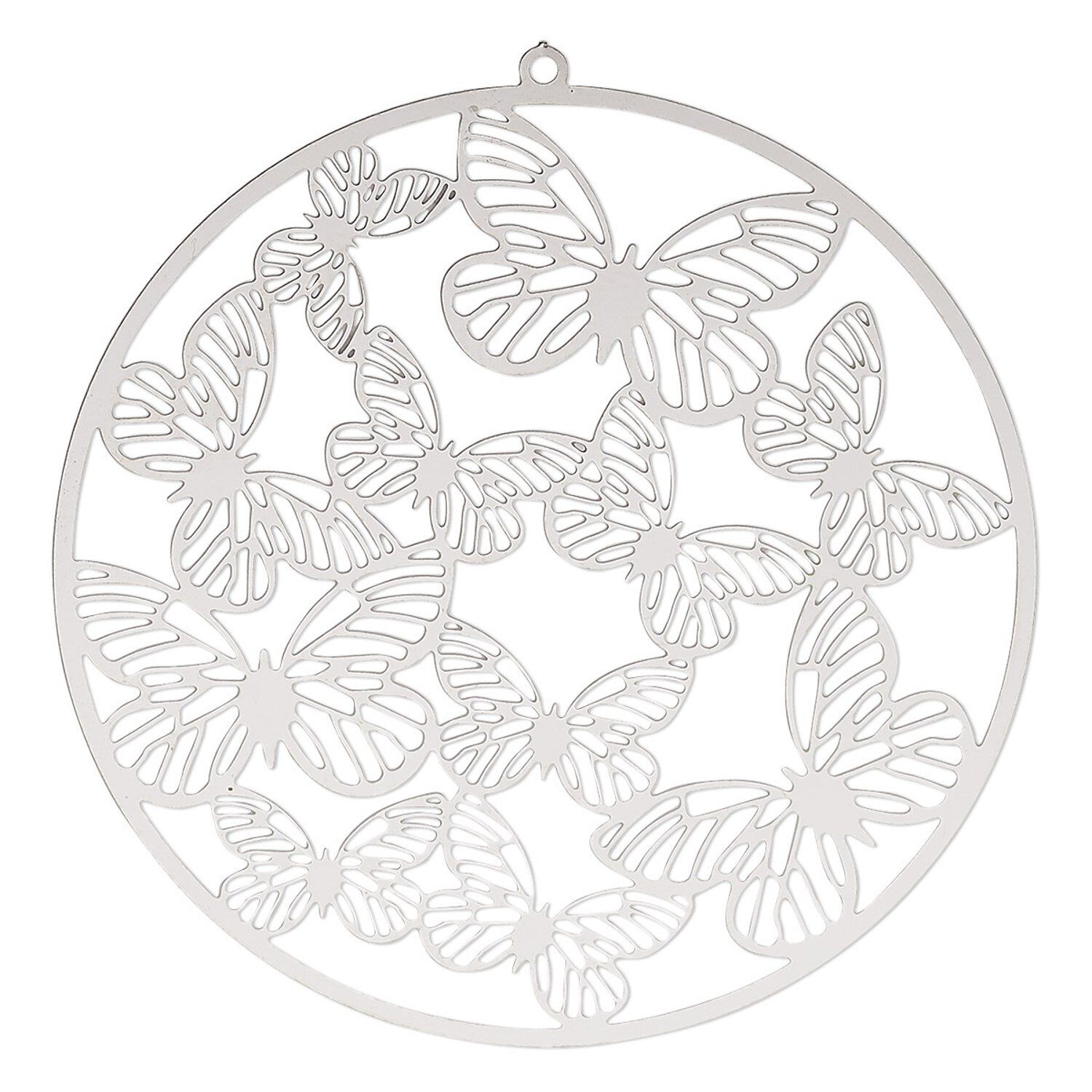 Focal, Lazer Lace™, stainless steel, 50mm double-sided round with cutout butterflies. Sold individually.