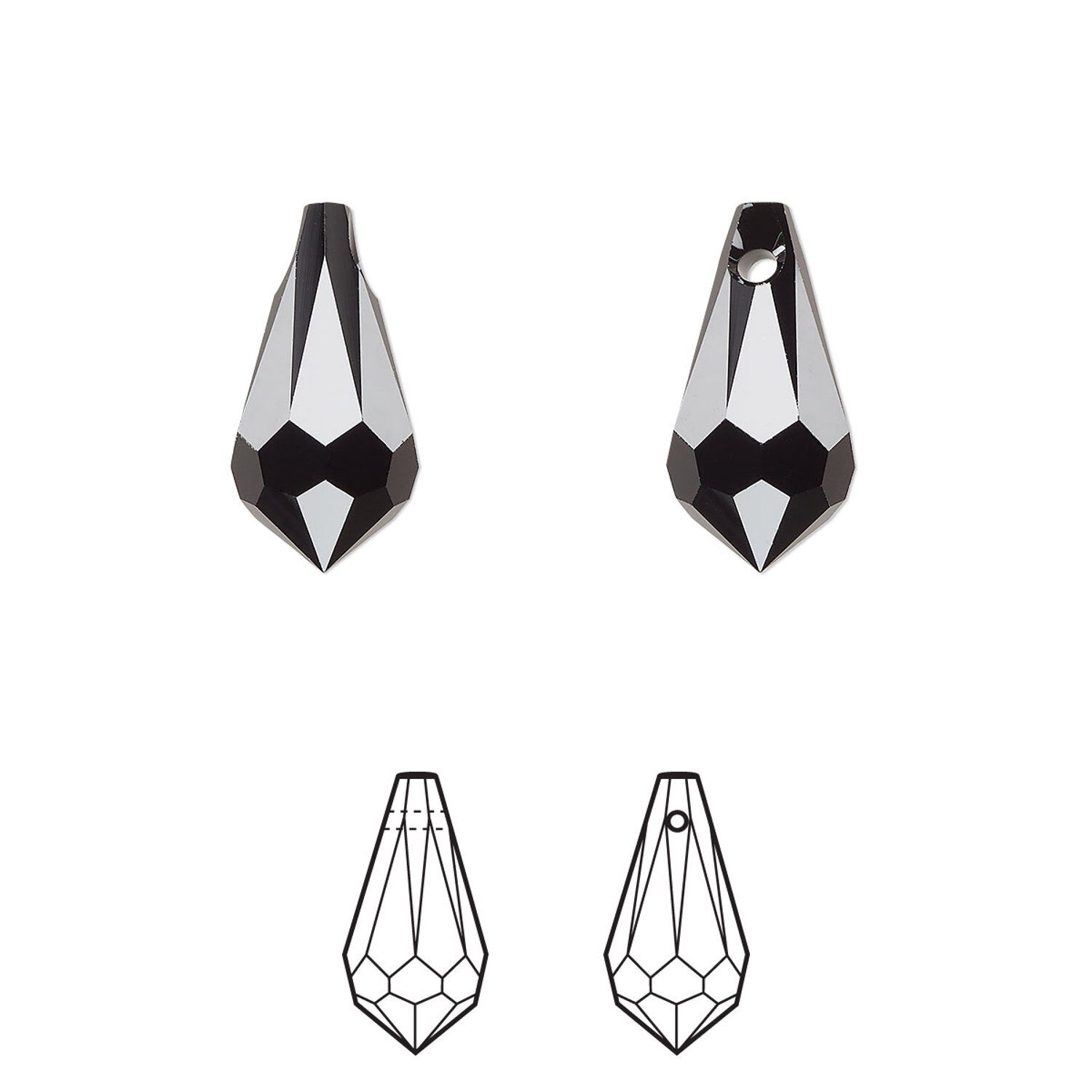 Drop 4pk jet, Crystal Passions® 15x7.5mm pendant teardrop 6000