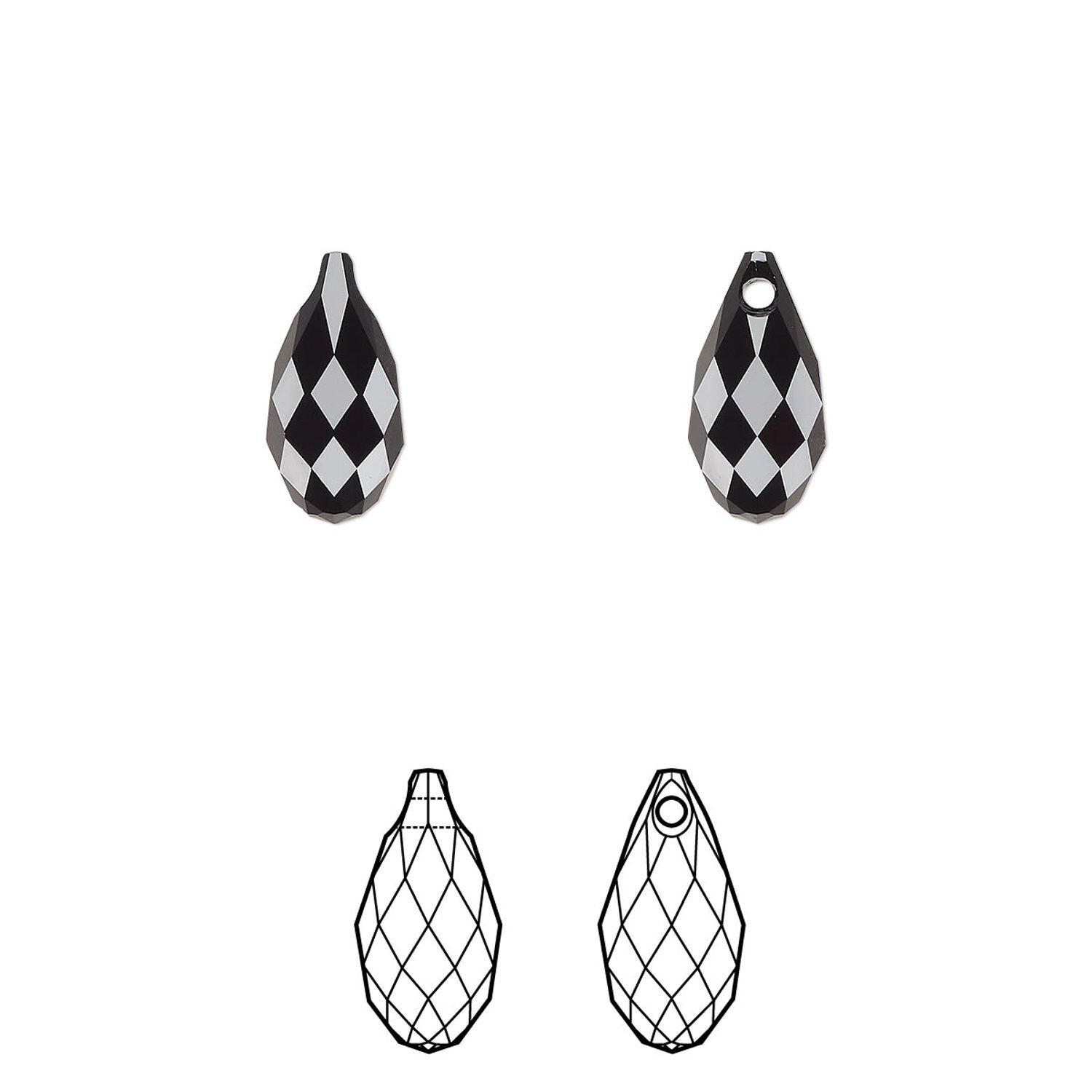 Briolette 2pk jet, Crystal Passions® 11x5.5mm pendant drop 6010