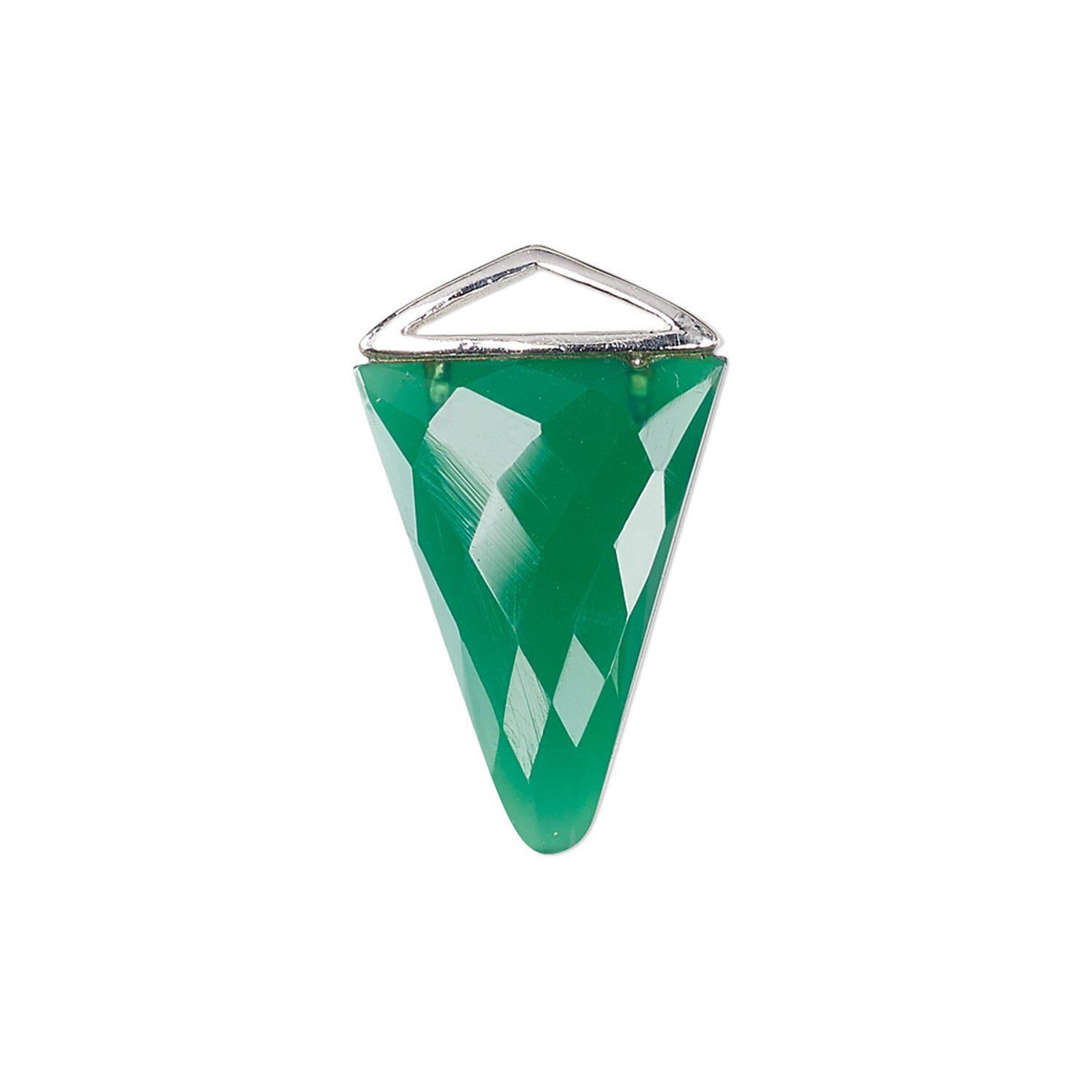 Hand-faceted and -polished flat triangle green onyx drop has a sterling silver cap with loop for easy use in jewelry-making. Designed by a Fire Mountain Gems and Beads employee. Sizes, shapes and colors may vary with handcrafted items.