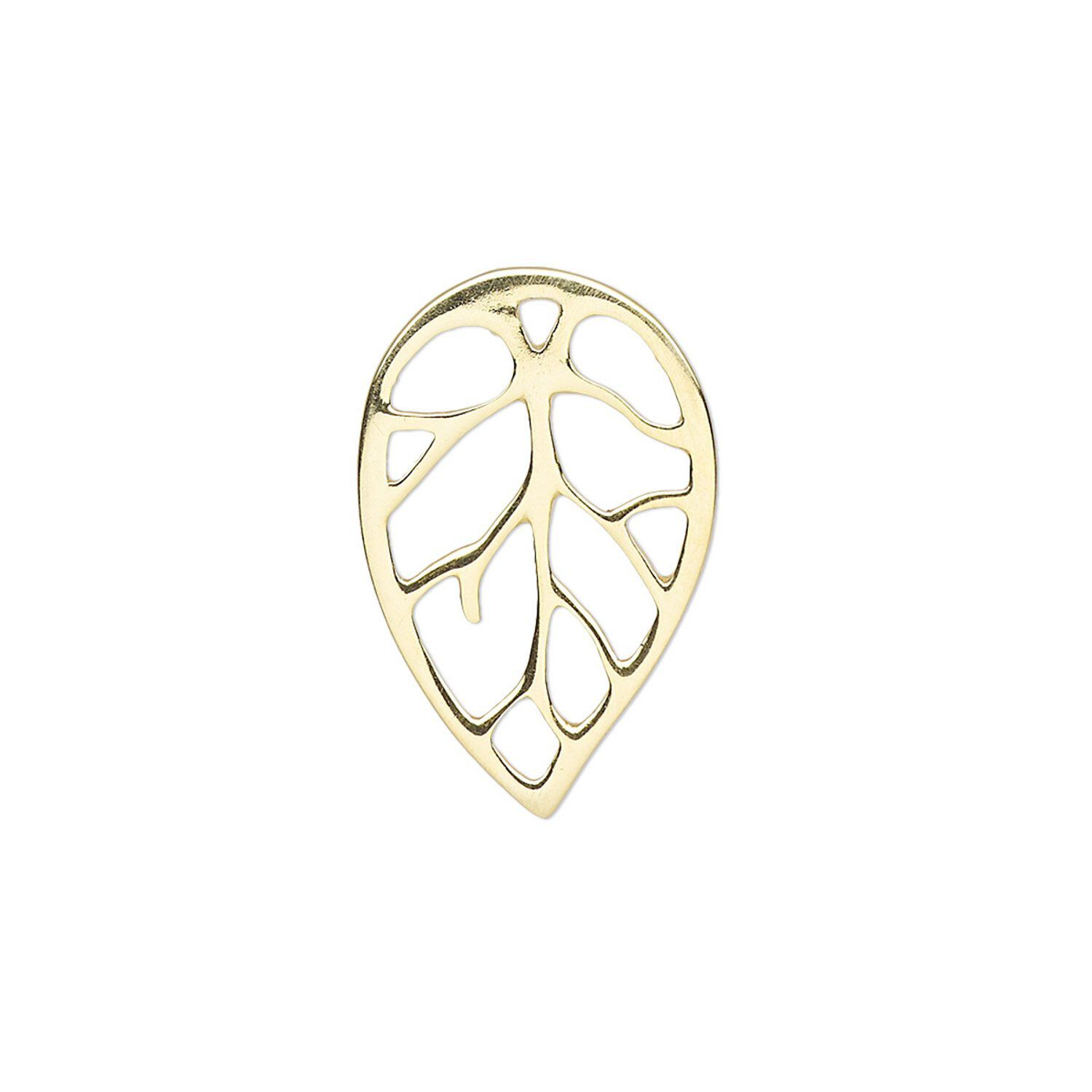 Component, gold-finished sterling silver, 22x14.5mm leaf with cutout design. Sold individually.