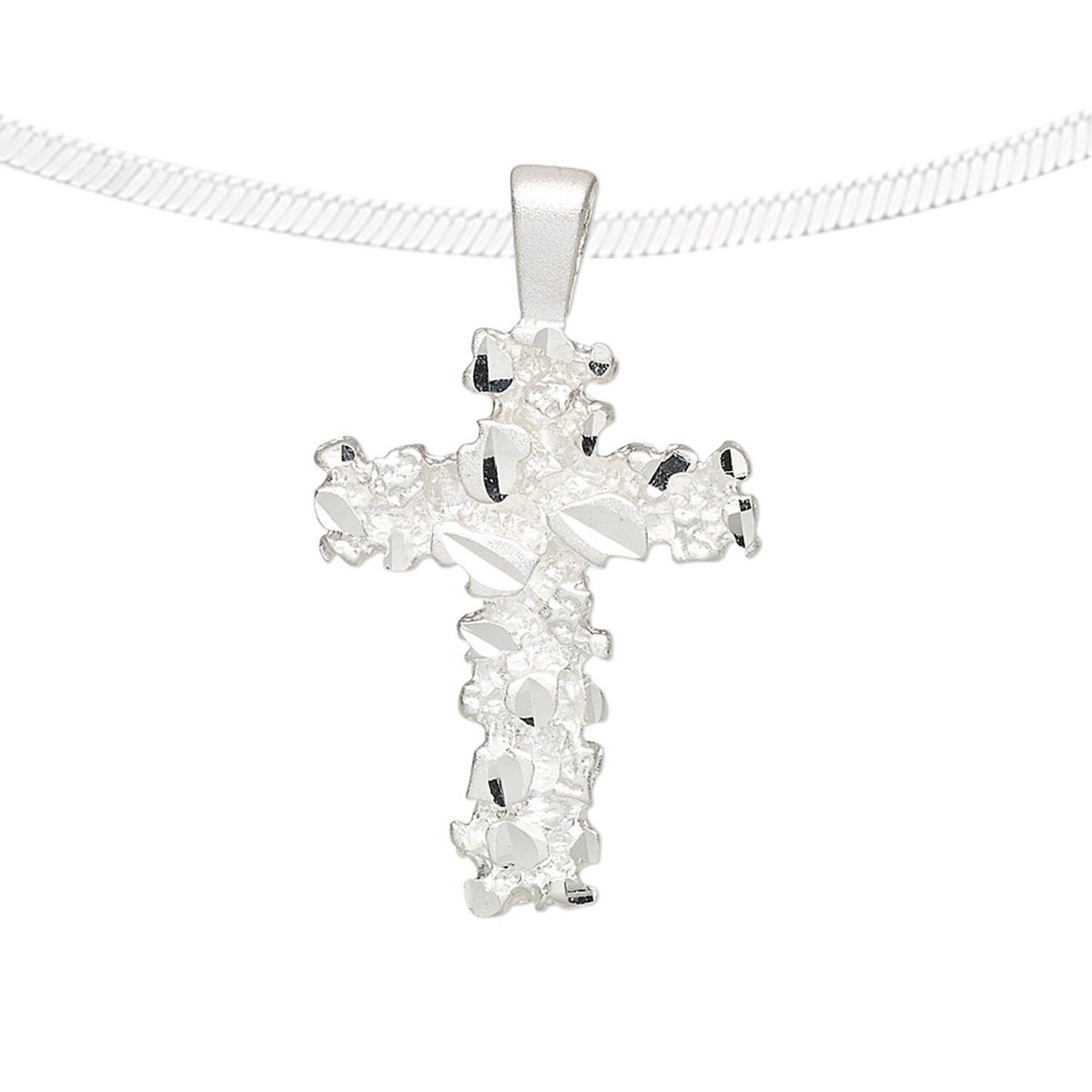 With a diamond-cut front for extra flash, this sterling silver cross is surprisingly lightweight. Sterling silver is a customer-favorite material with a precious metal gleam. Pendant has an anti-tarnish coating.