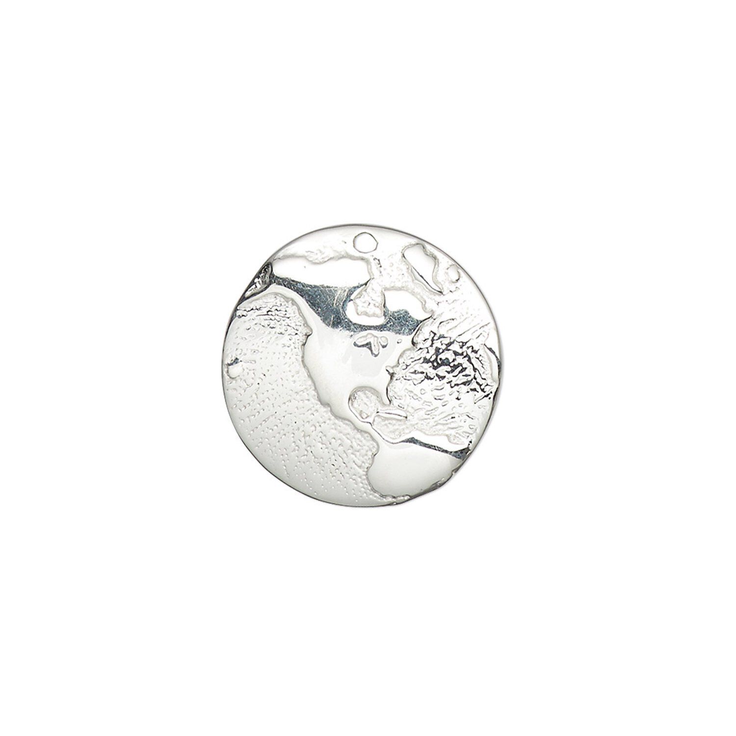 Charm, sterling silver, 17mm single-sided slightly domed round with embossed western hemisphere. Sold individually.