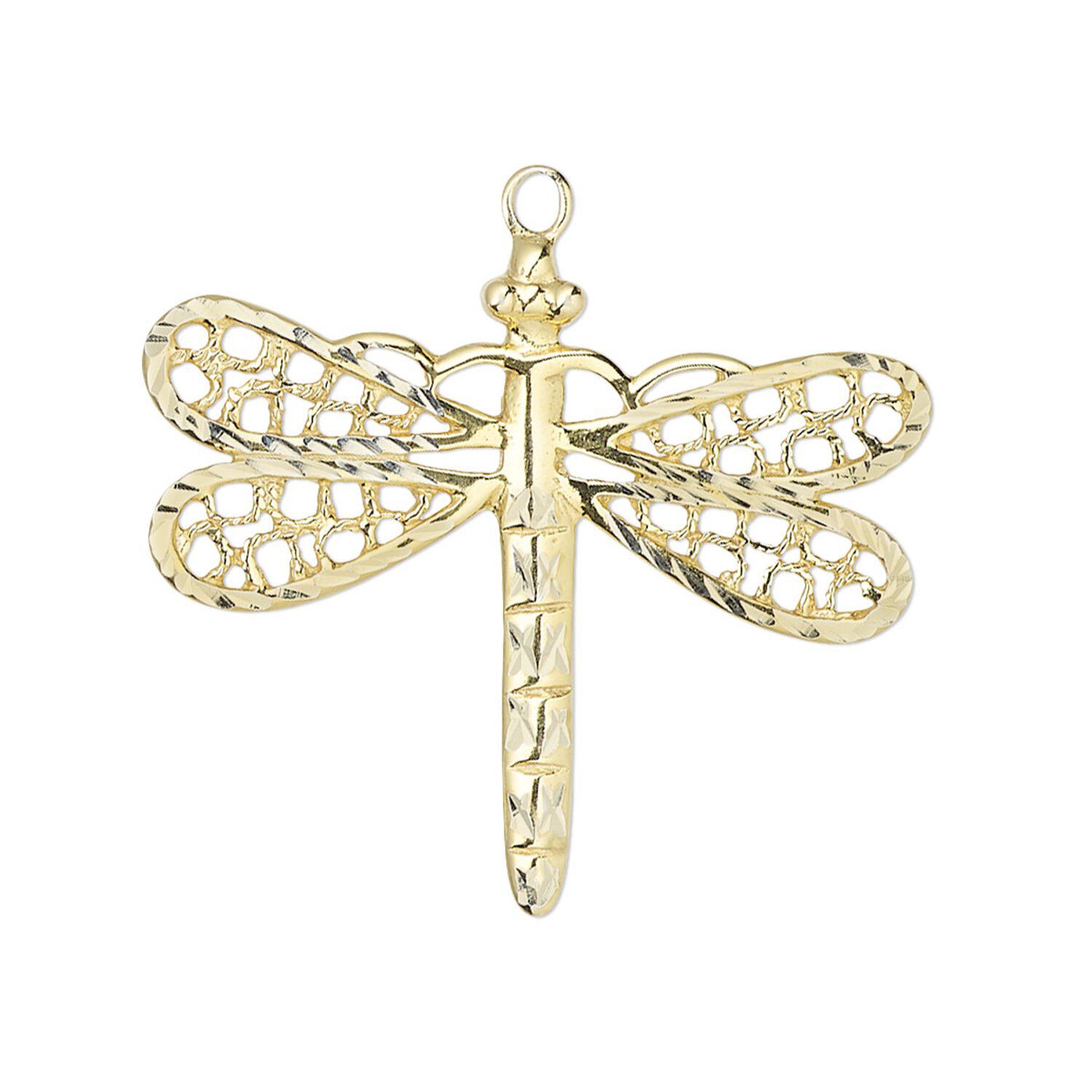 Focal, gold-finished sterling silver, 31.5x27mm single-sided diamond-cut dragonfly. Sold individually.