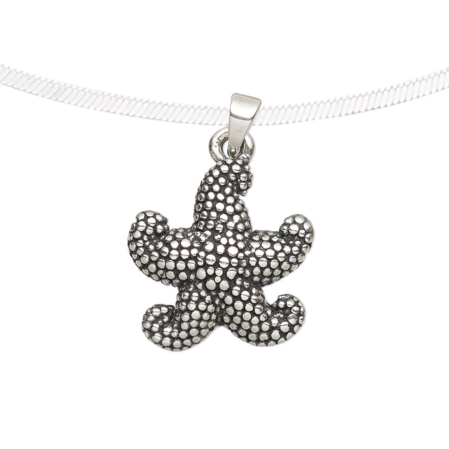 This antique fine silver single-sided textured starfish pendant is surprisingly lightweight. Fine silver is a customer-favorite material with a precious metal gleam. Pendant has an anti-tarnish coating.