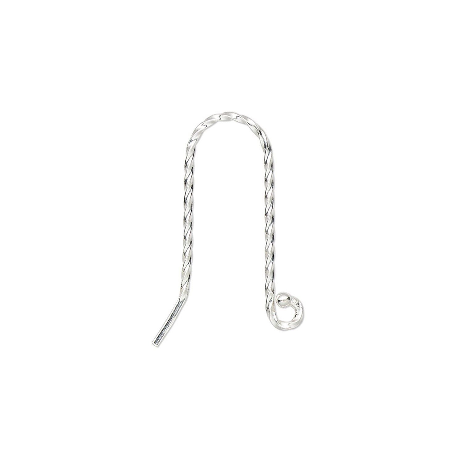 Ear wire fishhook 1pkg2 sterling silver, 20.5mm / 1.5mm ball / twisted square wire / open loop, 19 gauge 1 pair