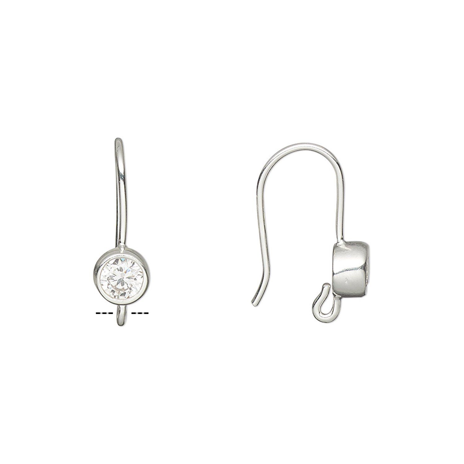 Ear wire fishhook 1pkg2 sterling silver / cubic zirconia, 17mm / 5mm faceted round / open loop, 21 gauge clear 1 pair