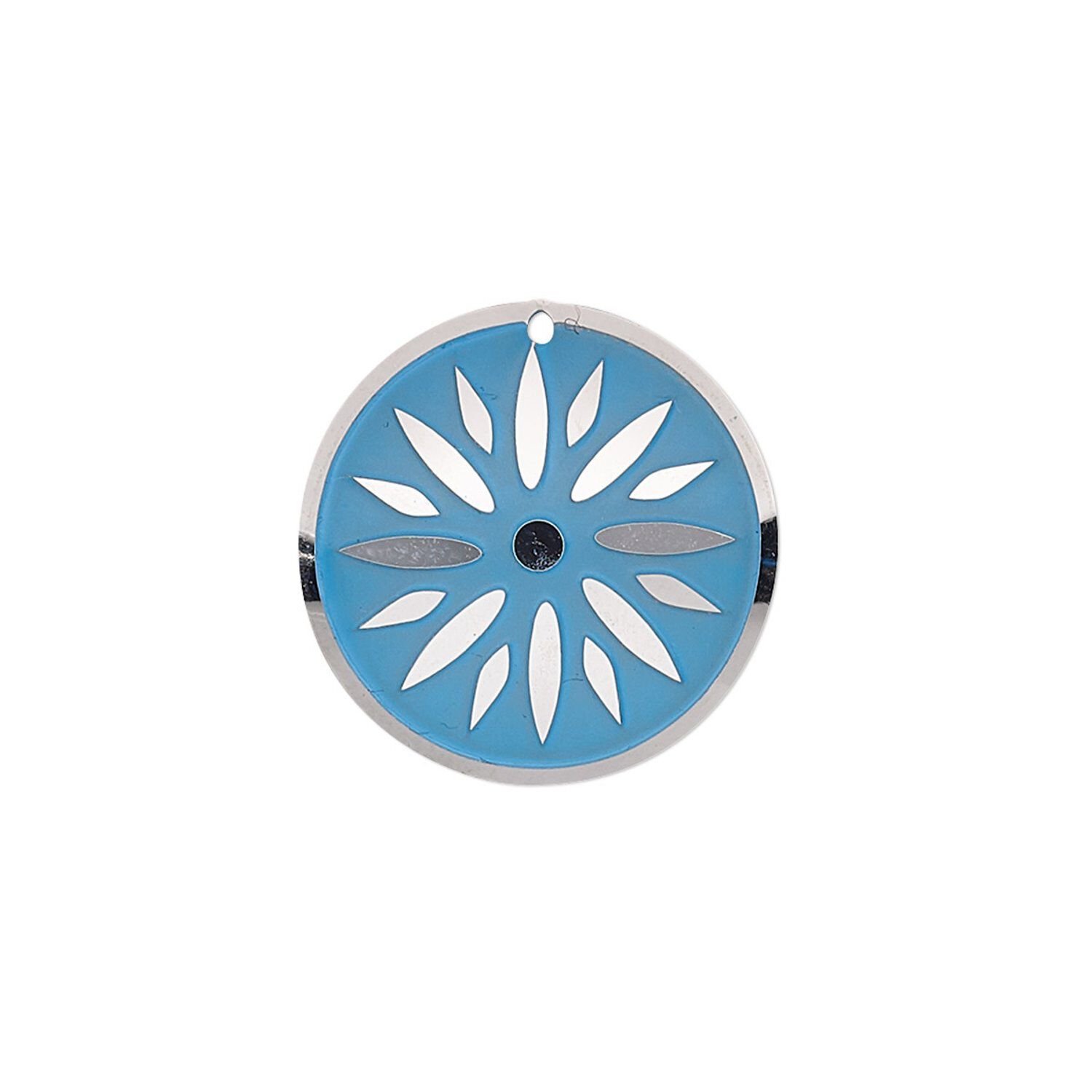 Drop, stainless steel, blue patina, 20mm single-sided domed round with flower design. Sold per pkg of 4.