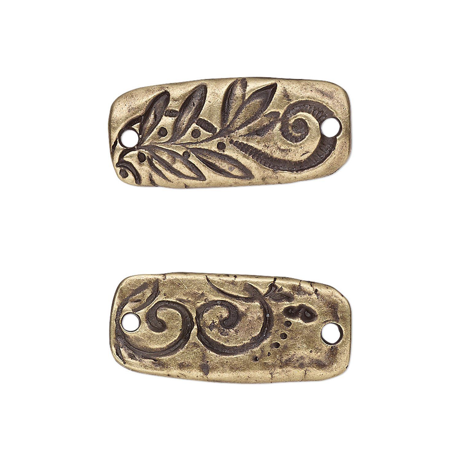 Link, TierraCast®, "Vida Mas Dulce" collection, antique brass-plated pewter (tin-based alloy), 23.5x11mm two-sided rectangle with flora design. Sold per pkg of 2.