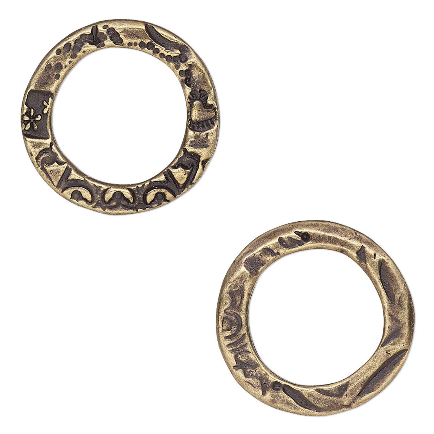 Component, TierraCast®, "Vida Mas Dulce" collection, antique brass-plated pewter (tin-based alloy), 20mm open round with flora design and 13.5mm hole. Sold per pkg of 2.