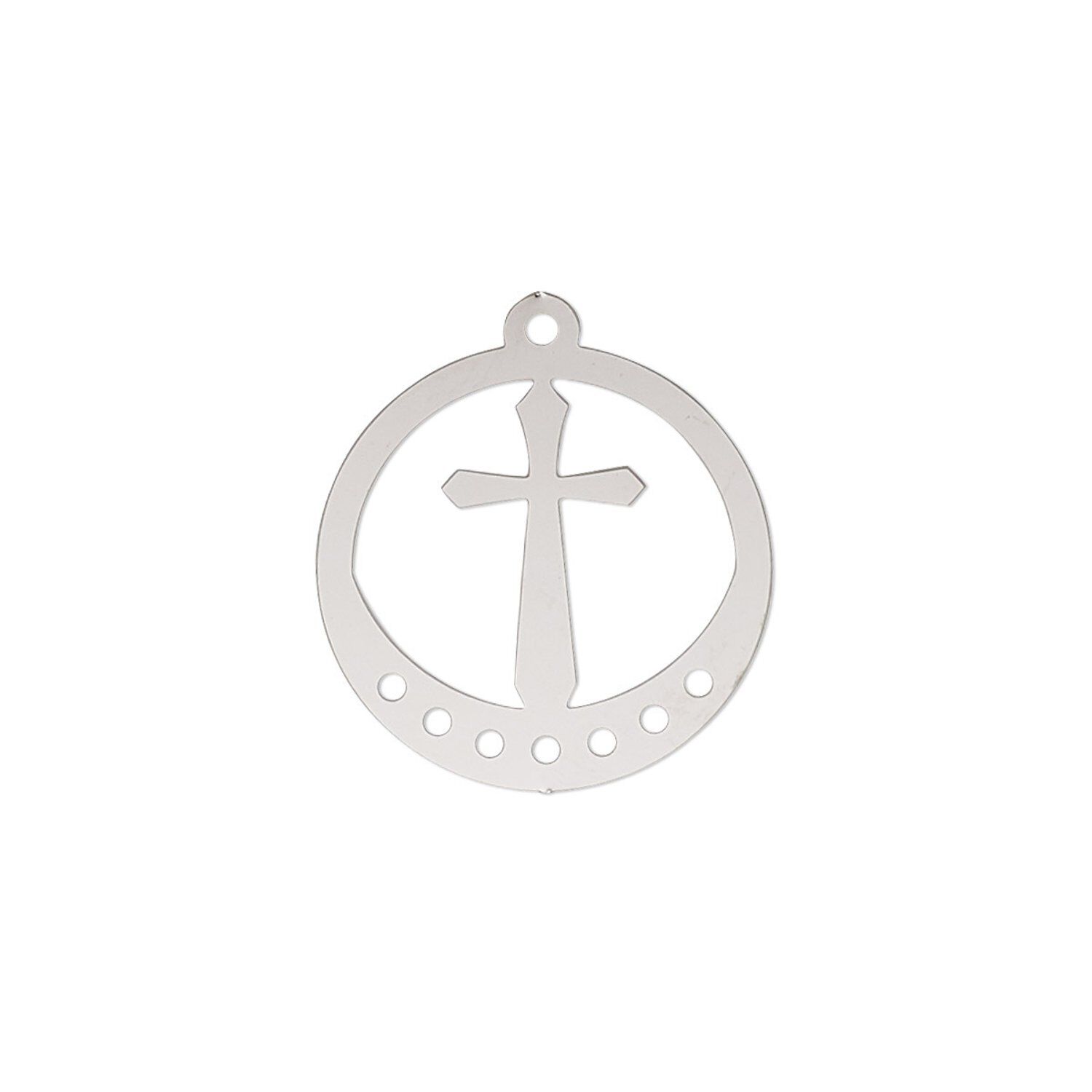 Drop, Lazer Lace™, stainless steel, 18mm double-sided open round with cross and 7 loops. Sold per pkg of 4.
