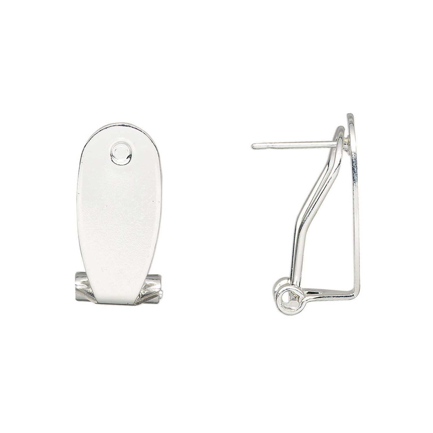 Earstud, silver-finished steel, 19x8.5mm flat oval with self-closing clip. Sold per pkg of 2 pairs.